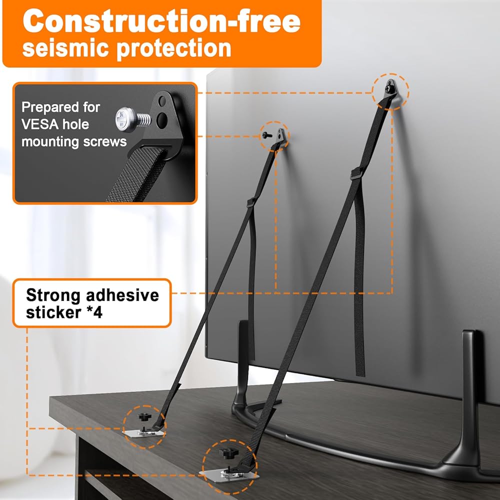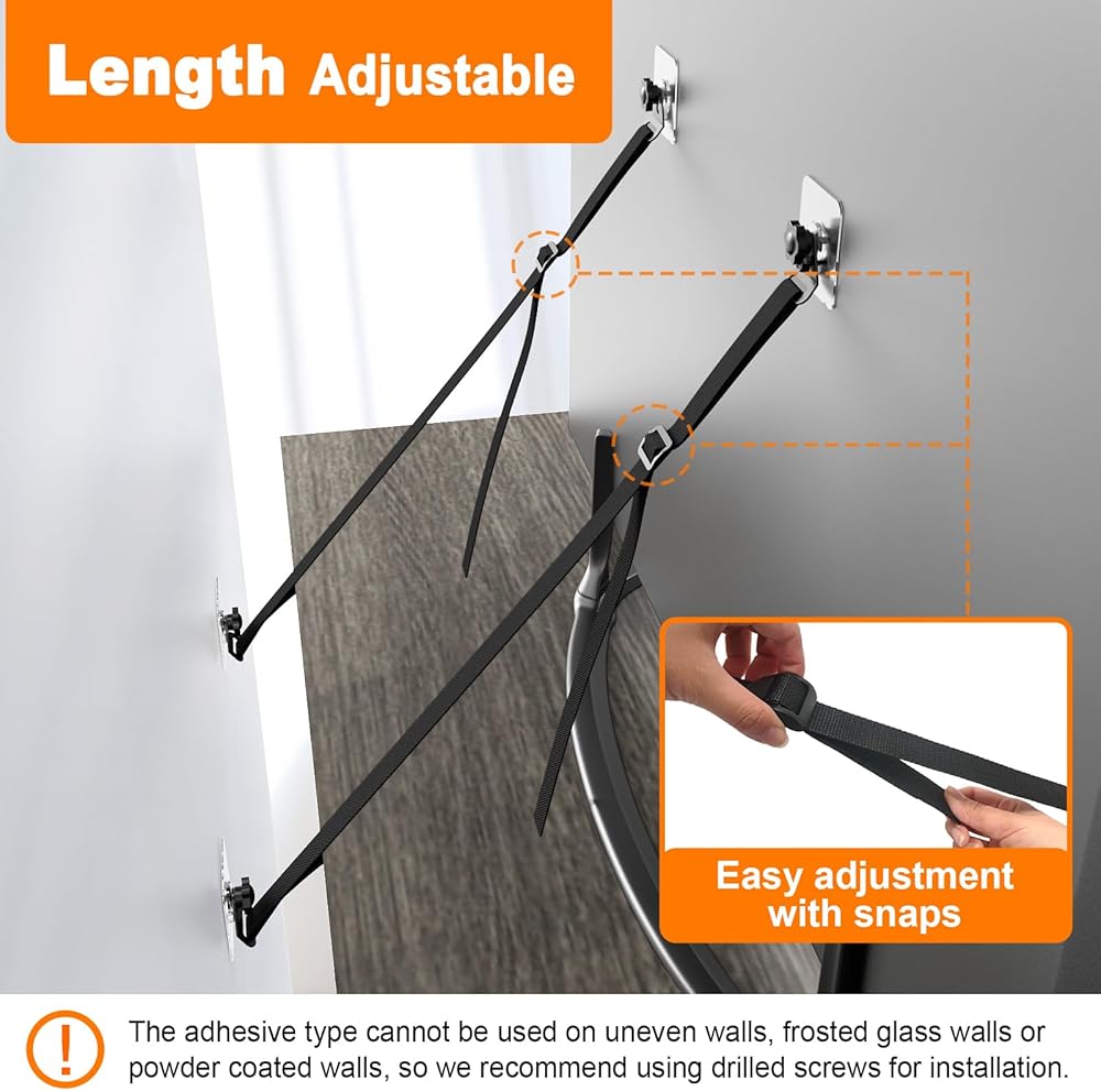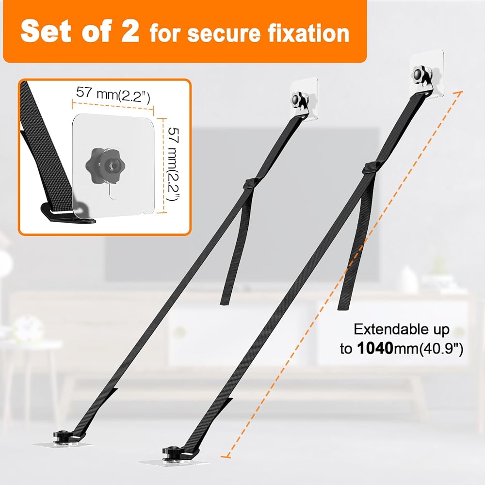 الطول قابل للتعديل: الطول الإجمالي لأشرطة التلفزيون والأثاث المضادة للطرف هو 157 سم، والتي يمكن استخدامها لأجهزة التلفاز حتى 85 بوصة ويمكنها تحمل زلزال شديد الشدة 7. يمكن تعديل الطول بسهولة باستخدام الإبزيم وهو مناسب لمعظم أجهزة التلفاز والأثاث.