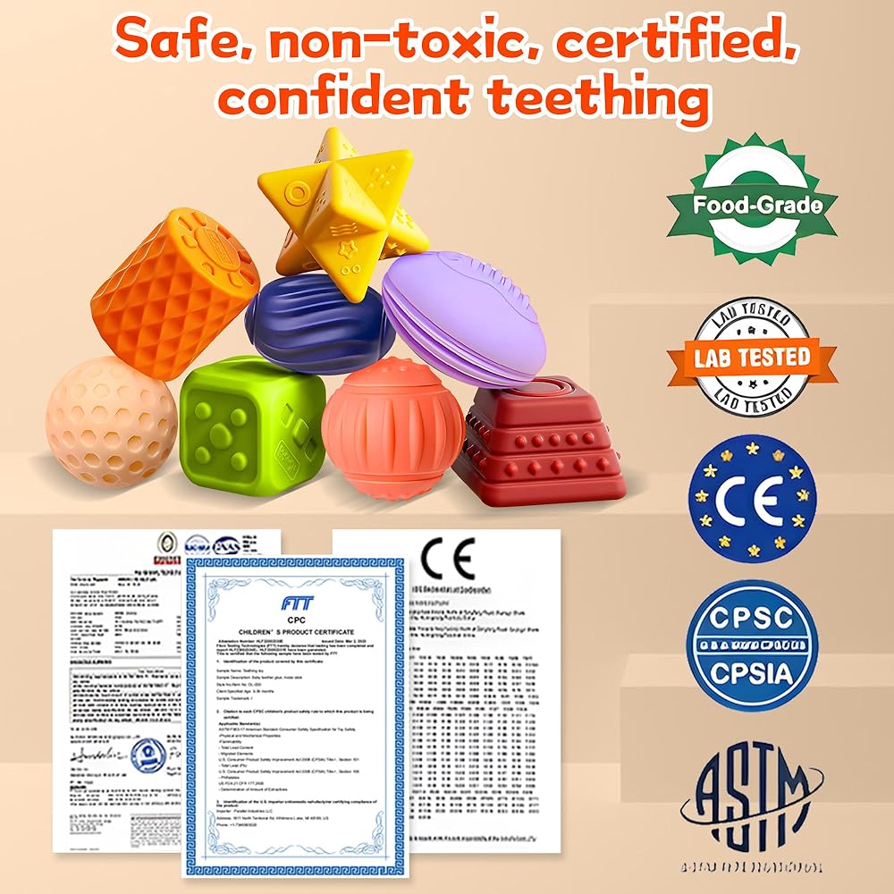 👶🏻【ألعاب أطفال آمنة من عمر 6 إلى 12 شهرًا】خالية من مادة BPA - كل كرة متعددة مزخرفة لتخفيف التوتر للرضع غير سامة وألعاب مونتيسوري للأطفال من عمر 0 إلى 6 أشهر تتوافق مع معايير سلامة ألعاب ASTM الأمريكية. تم تصميم ألعابنا الحسية للأطفال من عمر 6 إلى 12 شهرًا بدون سدادات بلاستيكية صغيرة للتخلص من خطر الاختناق مع الاستمرار في توفير أصوات مبهجة. وهذا يضمن سلامة أطفالك الصغار أثناء اللعب. كما أنه من السهل تنظيفه.
