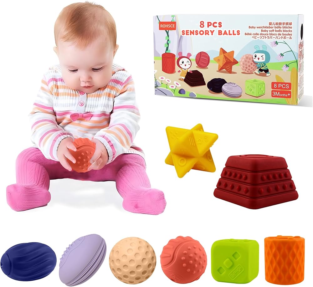 كرات حسية للطفل، ألعاب حسية متعددة ناعمة الملمس ألعاب مونتيسوري للأطفال الصغار مجموعة هدايا ألعاب كروية خالية من مادة BPA ألعاب أطفال مونتيسوري من 6 إلى 12 شهرًا
