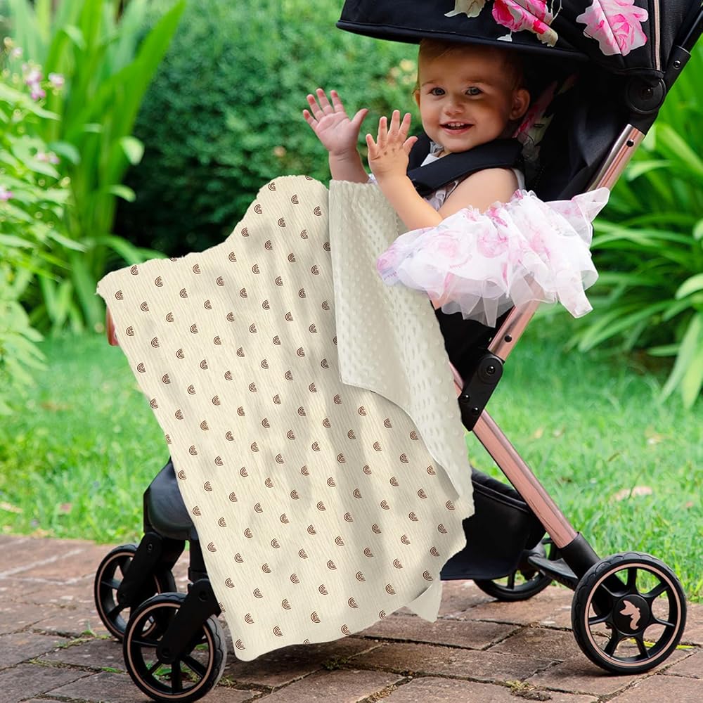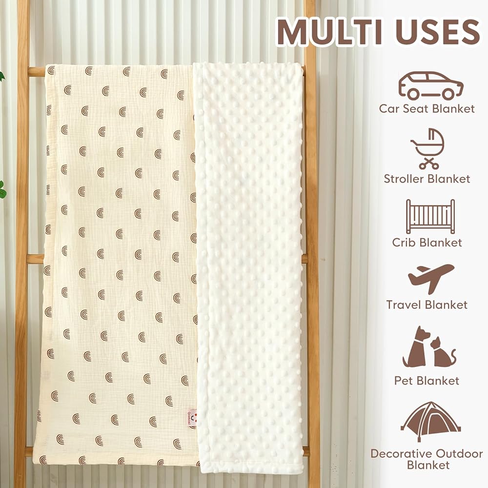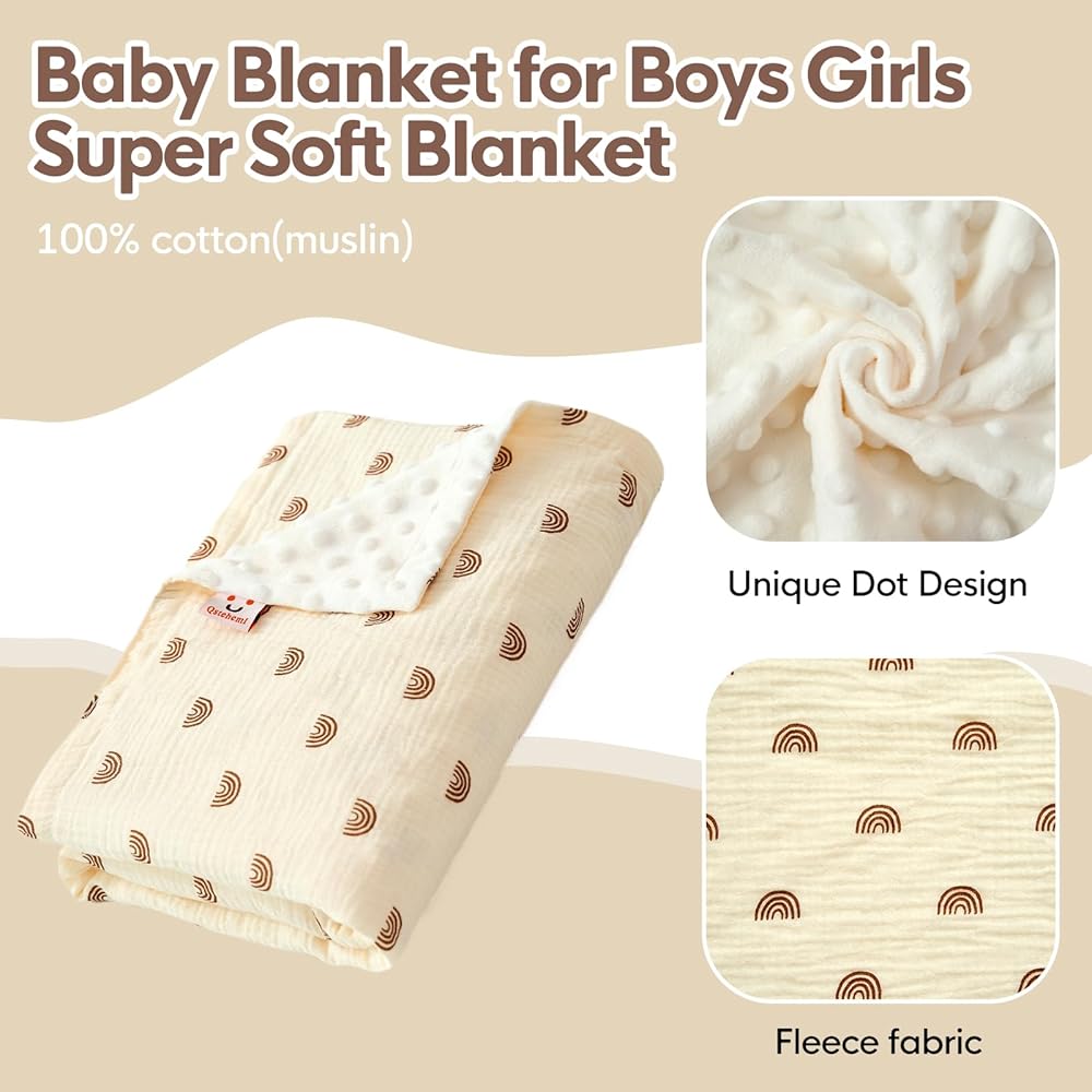 【أنماط جميلة】- تتميز بطانيات الأطفال لدينا بأنماط مختلطة وقابلة للمطابقة بألوان محايدة للجنسين. مصنوع من قماش ناعم لطيف على البشرة الحساسة مع تهوية سهلة. تعتبر البطانية القابلة للغسل في الغسالة رائعة لوضعها أثناء ركوب عربة الأطفال أو لفها في وقت القيلولة.