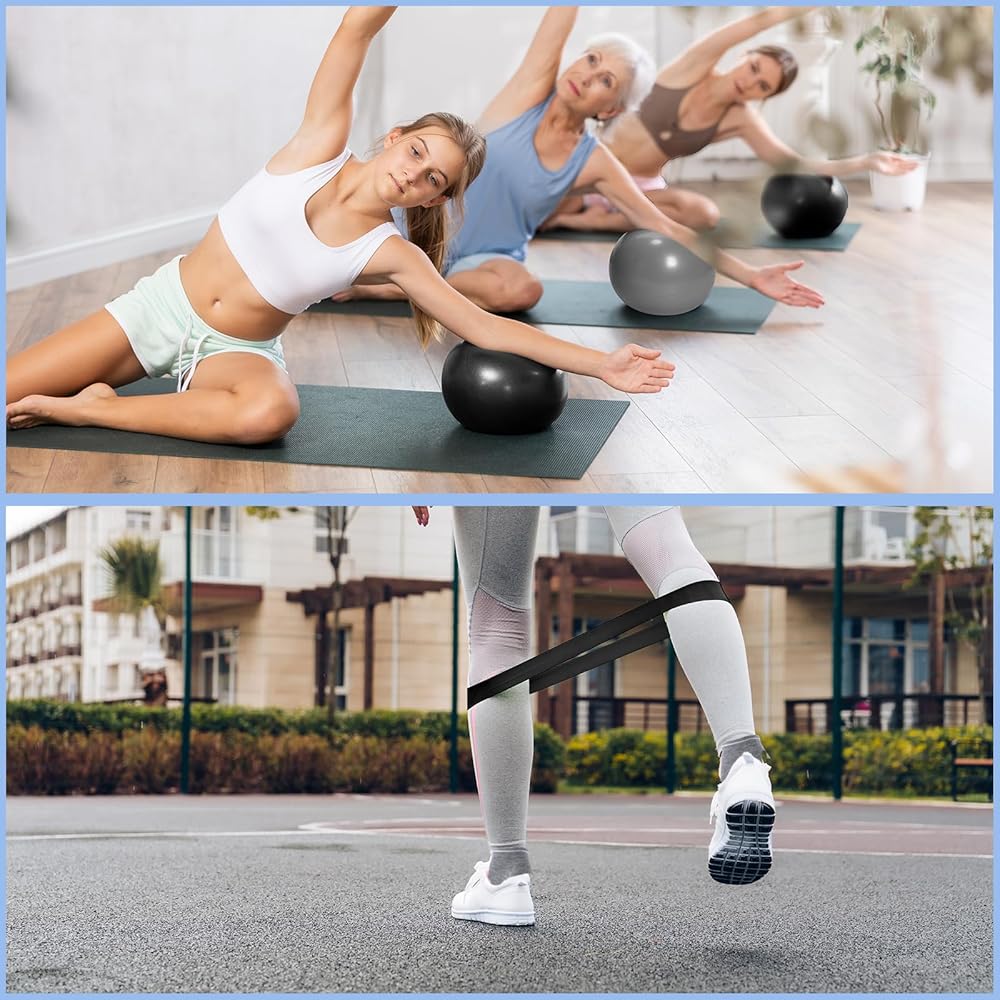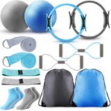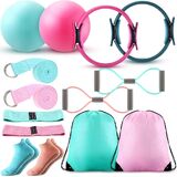 Poen Pilates Ring and Ball for Women Pilates Ring Circle Ball with Strap Strap 8 Mostance Bands Non Slip Scles Gym Back Placs Exercise Meature for Octions