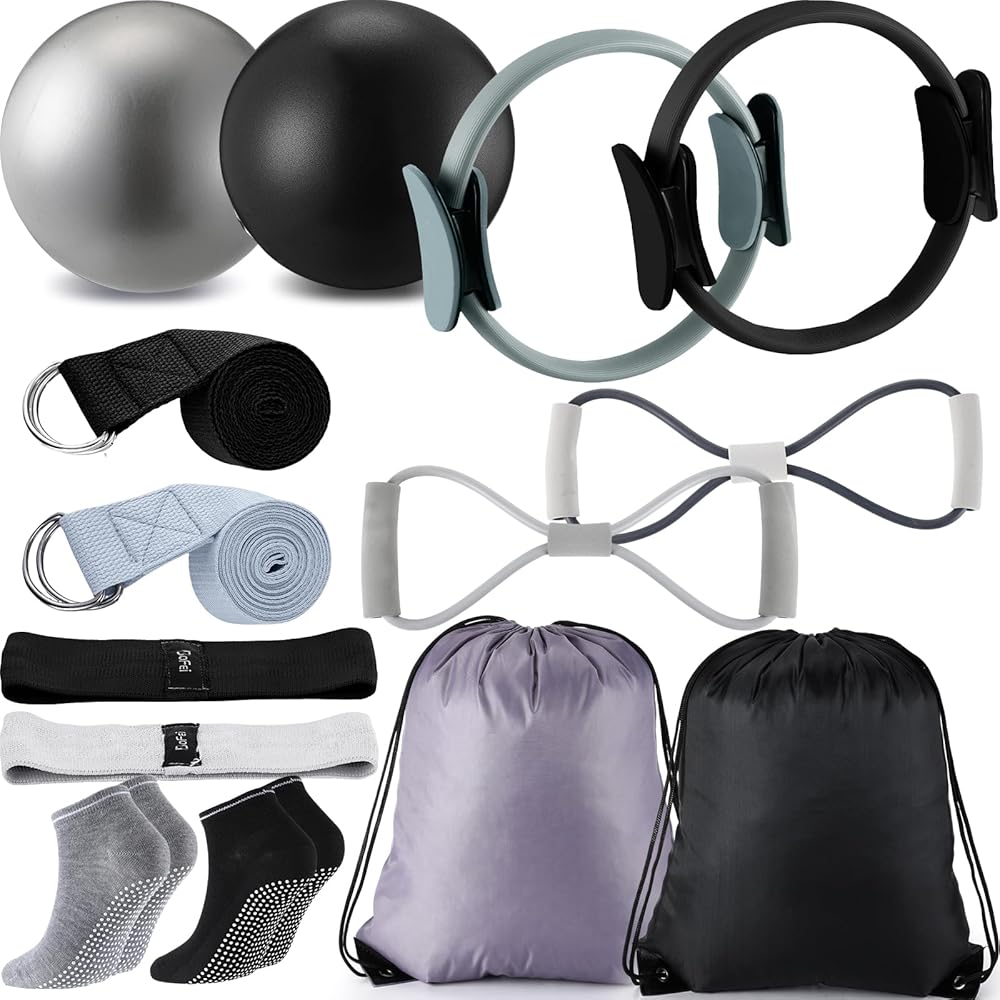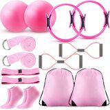 مجموعة معدات تمرين متعددة الاستخدامات: تتكون مجموعة معدات التمرين من حلقتين بيلاتيس، وكرتين بيلاتيس، وحزامين لليوجا، وقطعتين من 8 أشرطة مقاومة للأشكال، وشريطين مقاومة من القماش، وزوجين من الجوارب غير القابلة للانزلاق، و2 حقيبة رياضية؛ هذه مجموعة كاملة ومدروسة مصممة خصيصًا لتلبية احتياجات التمرين المتنوعة الخاصة بك؛ يمكن مشاركة مجموعتي معدات البيلاتس باللونين الأرجواني والوردي مع أصدقائك المقربين والاستمتاع بمتعة ممارسة التمارين معًا.