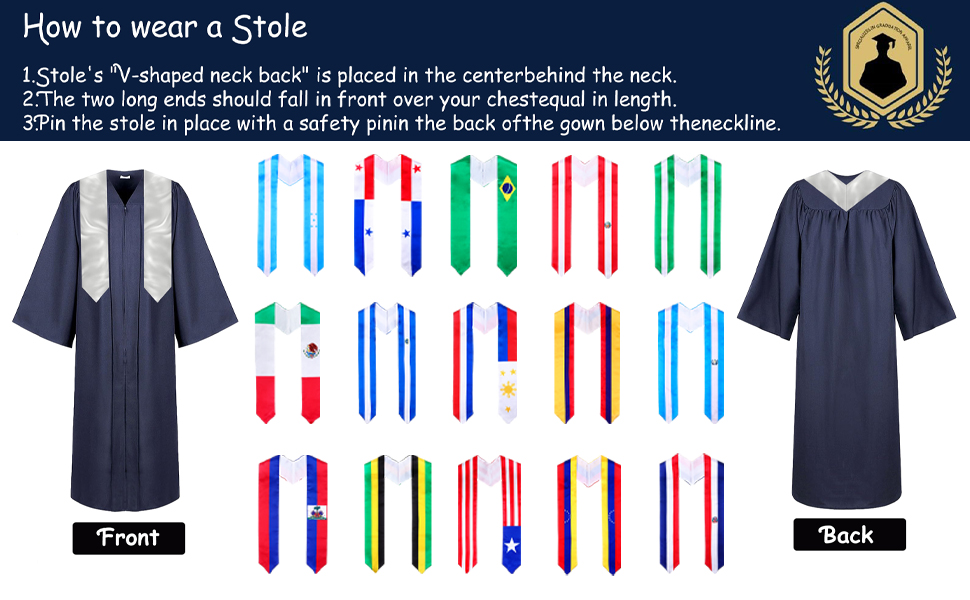 تصميم مريح: تم تصميم الجزء الخلفي من شال التخرج الفنزويلي هذا برقبة على شكل حرف V لضمان أن يكون الشال مسطحًا على رقبتك، مما يسمح لك بتجربة الراحة المسطحة.