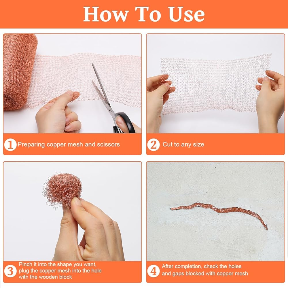 【معلومات المقاس】 يبلغ حجم لفة الشبكة النحاسية 12.7 سم × 50 قدمًا، ويمكن قطع التحكم في القوارض الشبكي النحاسي بسهولة إلى أي حجم لملء الفتحات المختلفة وفقًا لاحتياجاتك الفعلية.