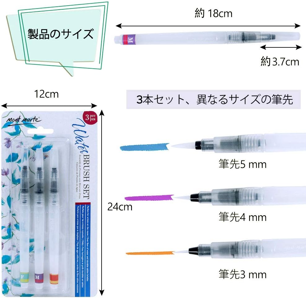 3 different sized brushes: fine 3mm tip, medium 4mm tip and broad 5mm tip