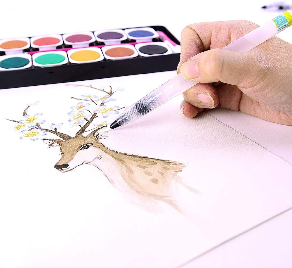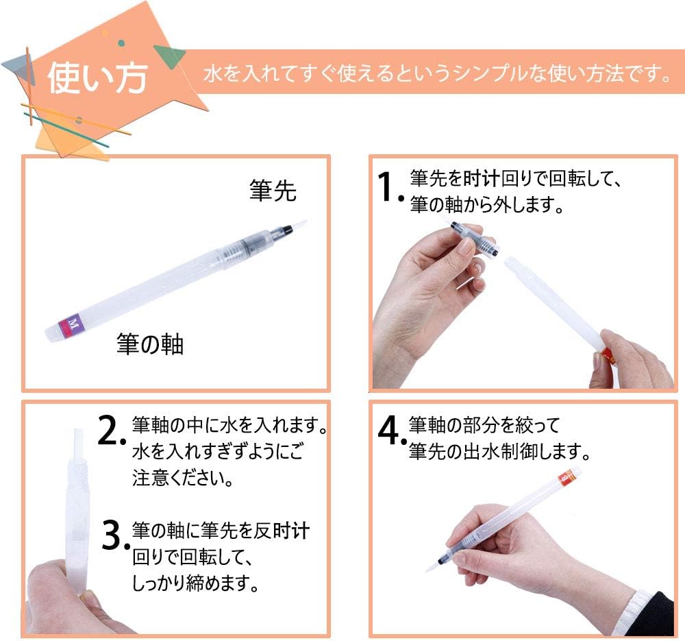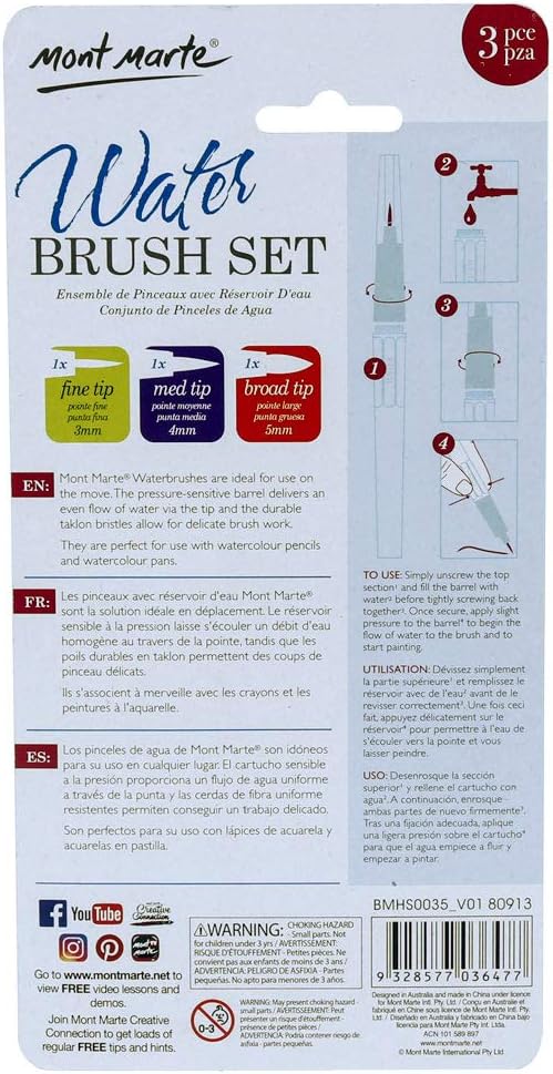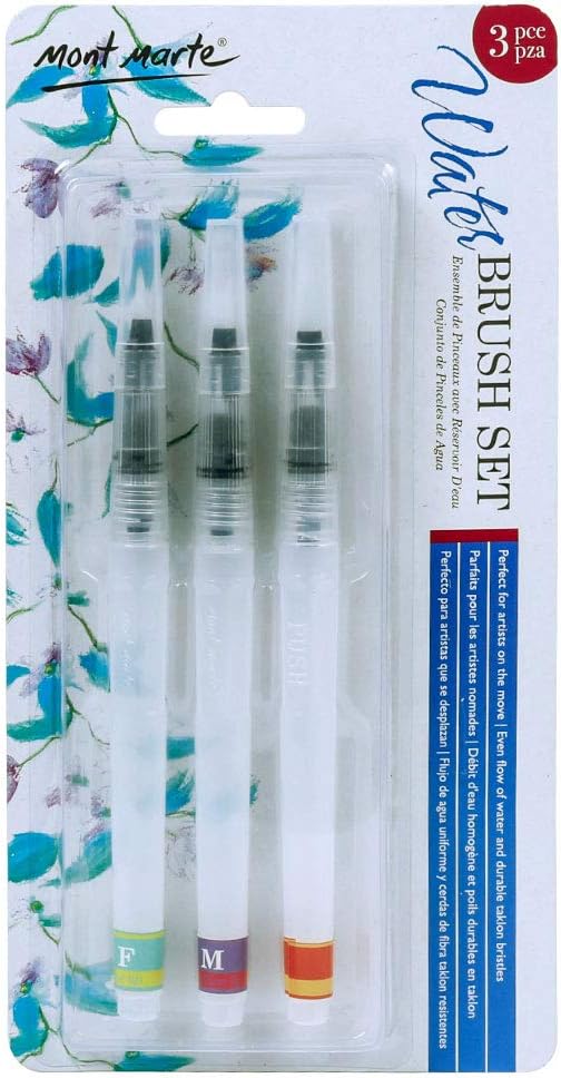 To use: Simply unscrew the top section and fill the barrel with water before tightly screwing back together. Once secure, apply slight pressure to the barrel to begin the flow of water to the brush and to start painting.