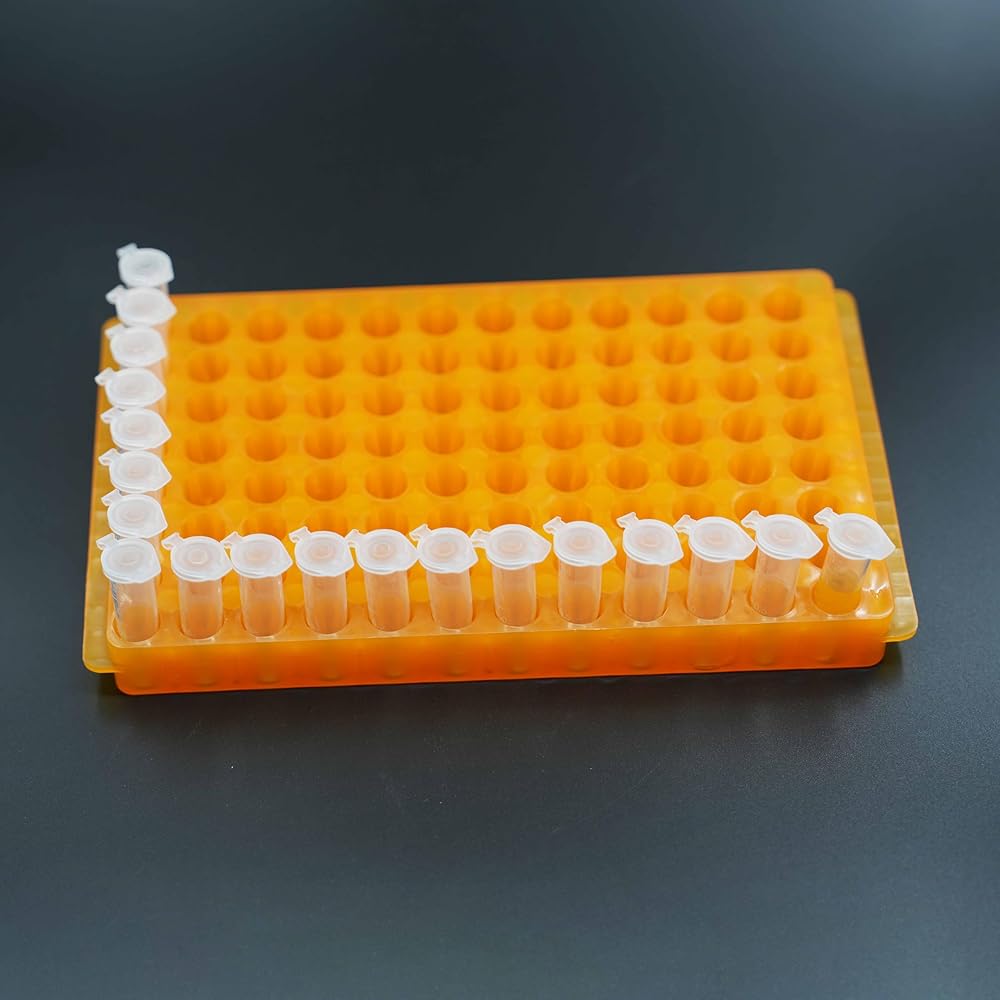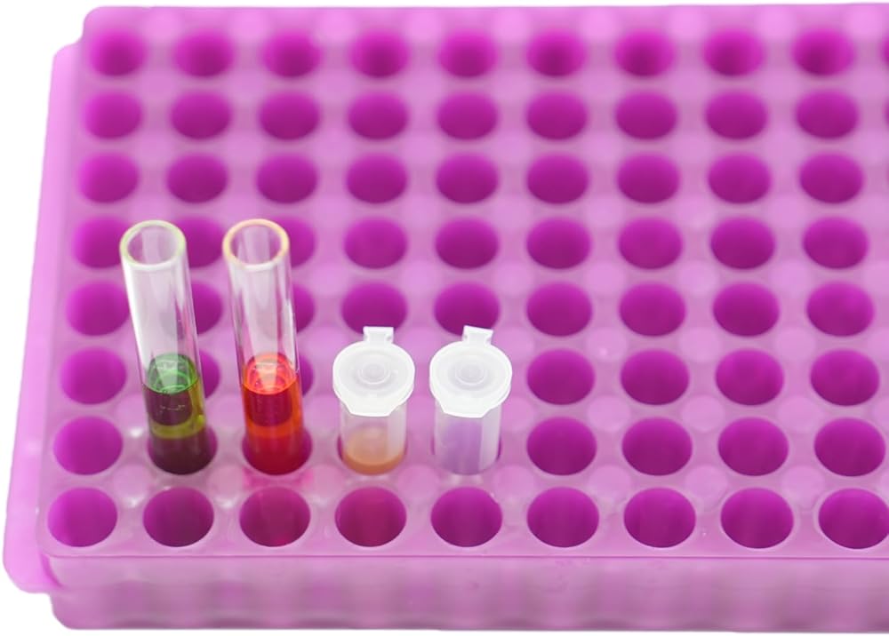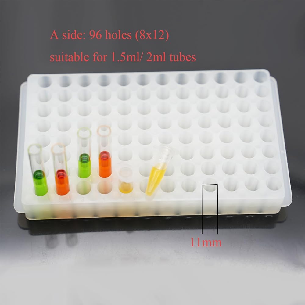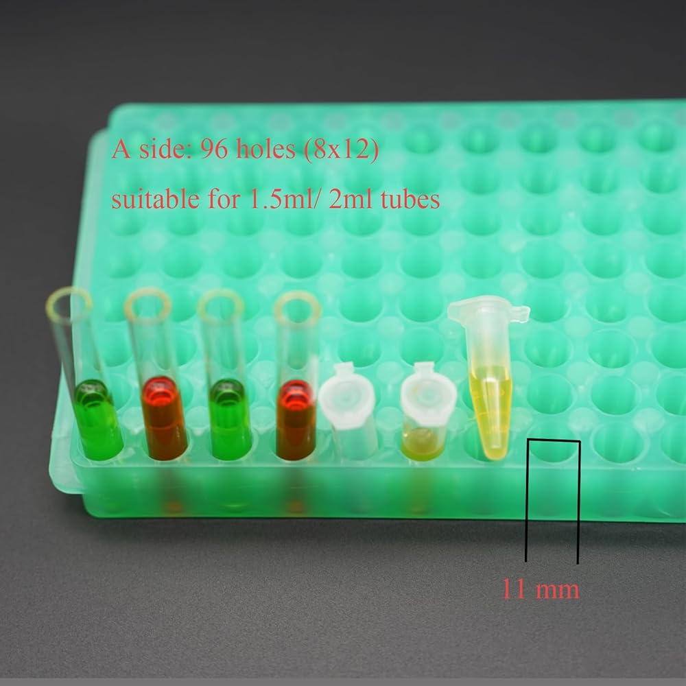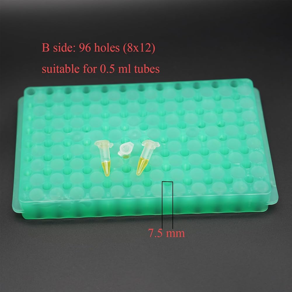 • تصميم مزدوج الجوانب: التعبئة مع 6 قطع من رفوف أنابيب الطرد المركزي الدقيقة، الجانب A هو أنبوب الطرد المركزي 1.5 مل - 2 مل، والجانب B هو أنبوب الطرد المركزي 0.5 مل، كل جانب به 32 فتحة، يرجى ملاحظة أن رف الأنبوب هذا غير مصنوع لملء الكبسولات