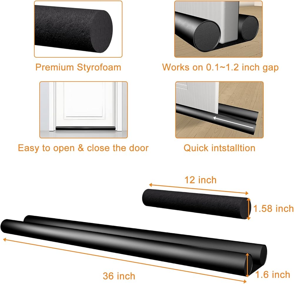 سدادة باب كبيرة لأسفل الأبواب 36 بوصة تحت مسودة الباب، مانع الضوضاء، سدادات فجوة سوداء، واقي مسودة الباب لأسفل الأبواب، قابل للتعديل، باب مزدوج، مانع تسرب النافذة