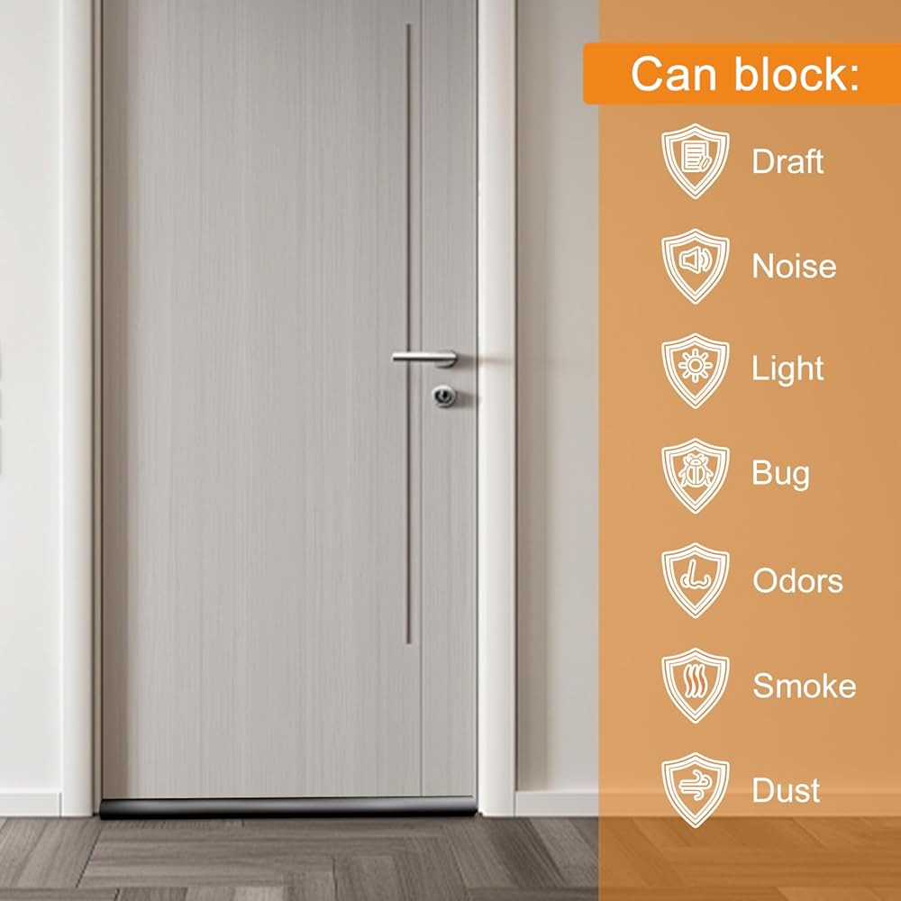 عزل ممتاز مع سدادات تهوية تحت الباب: مصممة لسد خلوص الباب، سدادات فتحة تهوية الباب الخاصة بنا تحافظ على الهواء الساخن في الداخل والهواء البارد خارجًا. يمكن استخدامه كعازل للصوت ومكبر صوت أسفل الباب لتقليل الضوضاء ومنع دخول الحشرات