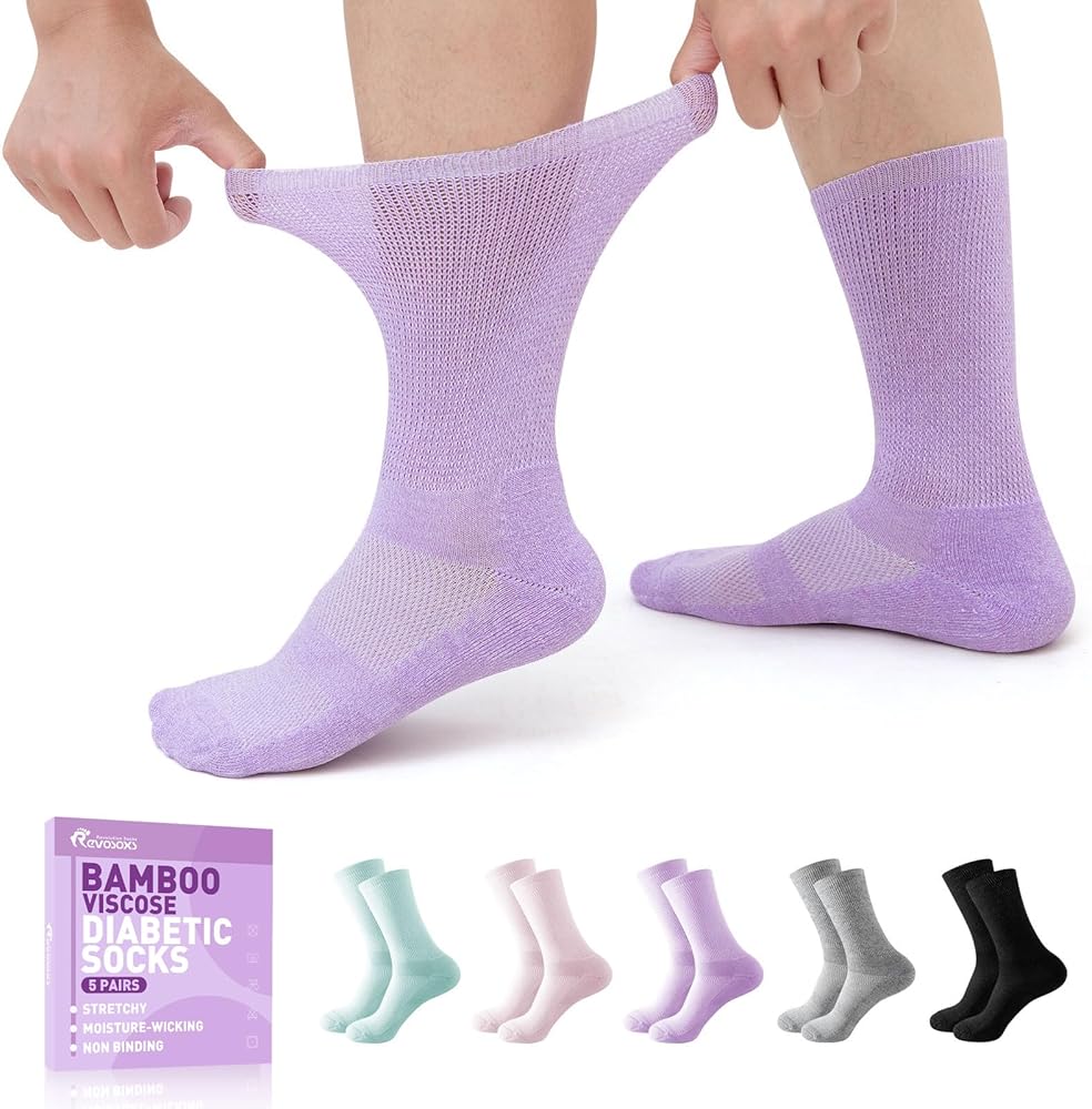 جوارب أكثر صحة لمرضى السكري - جواربنا للنساء والرجال تمت حياكتها من ألياف الفسكوز (49% فيسكوز، 49% بوليستر، 2% سباندكس). مصنوعة من خلال إضافة البوليستر إلى الفيسكوز، مما يجعل الجوارب المخيطة تتمتع بمزايا امتصاص الرطوبة، وامتصاص العرق. والتهوية والمرونة الجيدة والمتانة. بالمقارنة مع الجوارب المصنوعة من القطن أو البوليستر الخالص، توفر هذه الجوارب بيئة قدم جافة ومنعشة، وهي أكثر ملاءمة لمرضى السكري.