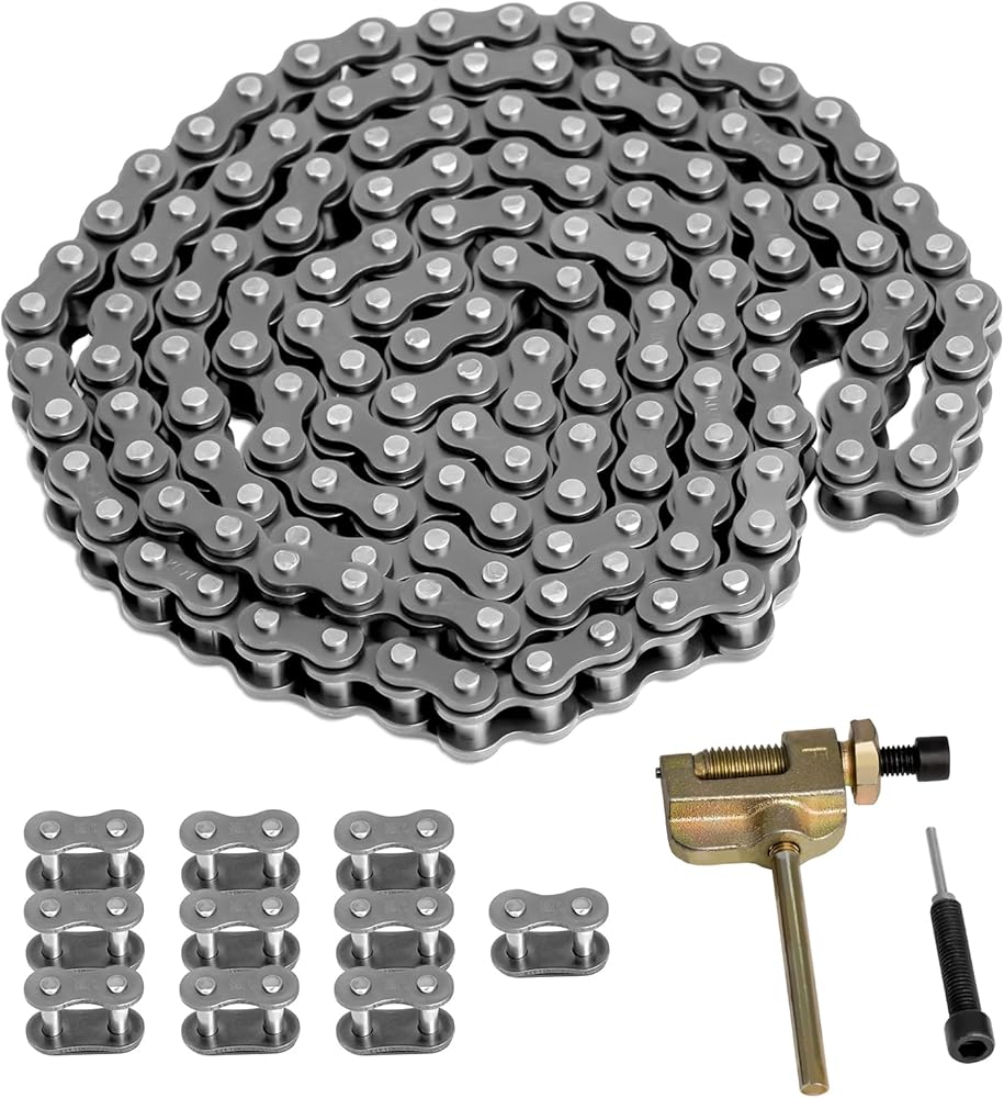 سلسلة دوارة Belleone 25 بطول 3 أقدام مع 10 وصلات توصيل وكسارة سلسلة، 25 سلسلة قيادة متوافقة مع دراجة صاروخية Razor 50cc MX500 MX650 SX500، مناسبة لسيارات Go Karts/الدراجات الصغيرة/الدراجات الترابية/الدراجات البخارية/ATV