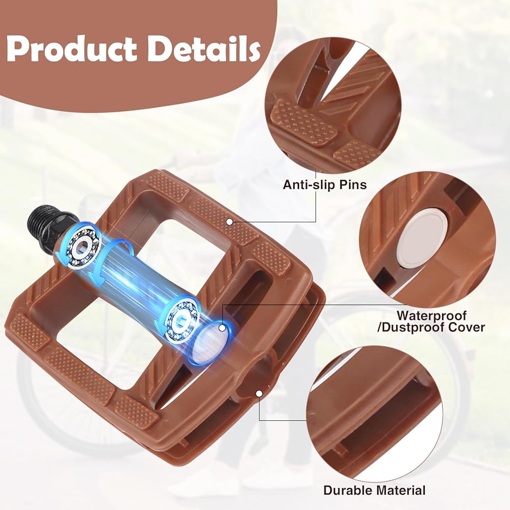 مضاد للانزلاق: سطح الدواسة مجهز بجزيئات مضادة للانزلاق، مما يجعلك أكثر أمانًا واستقرارًا عند الركوب. حتى لو كانت مغطاة بالطين بعد الركوب، فلا تقلق بشأن انزلاق قدمك عن الدواسة.