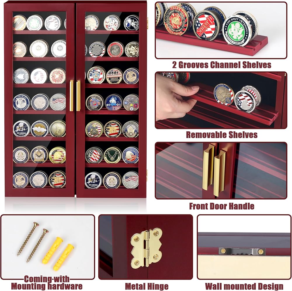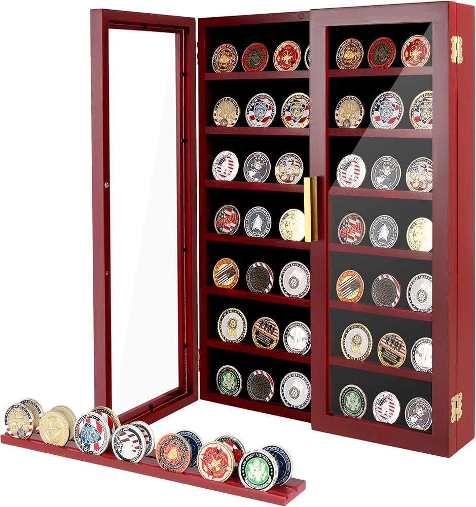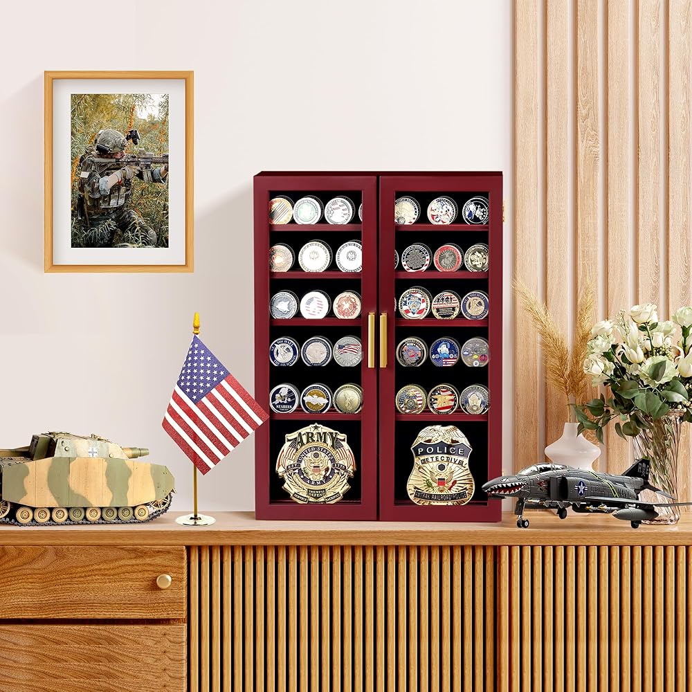 【هدية مثالية】: يُعد عرض رف العملات المعدنية العسكري هدية ممتازة للأبطال، وكذلك للعائلة والأصدقاء وهواة جمع العملات المعدنية. إنها الهدية المثالية لأعياد الميلاد أو التقاعد أو يوم الذكرى أو يوم المحاربين القدامى أو القوات الخاصة أو عيد الشكر أو عيد الميلاد أو أي عطلة أخرى.