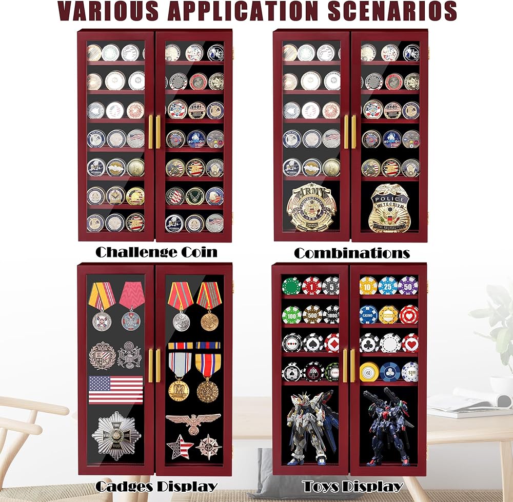 【تصميم بسعة كبيرة】: يبلغ مقاس علبة عرض الميدالية العسكرية هذه 18.9 بوصة ارتفاعًا × 13.8 بوصة عرضًا × 2.56 بوصة عمقًا، إجمالي 7 طبقات، يمكنها حمل 98 عملة معدنية قياسية، والتي لا توفر مساحة سطح المكتب فحسب، بل تلبي أيضًا احتياجاتك المتنوعة. تصميم الباب المزدوج يجعل من السهل الوصول إلى العملات المعدنية من زوايا مختلفة ويحمي العملات المعدنية من السقوط.