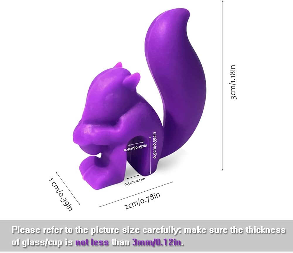 🐿️【المواصفات: أقلام تحديد للمشروبات 10 قطع، حاملات أكياس الشاي. 1*2*3 سم. يرجى الانتباه إلى حجم أخدود السنجاب الصغير. إذا كان سُمك الزجاج الخاص بك أقل من 0.3 سم/0.12 بوصة، فإن قلم تحديد كأس النبيذ هذا غير مناسب له.