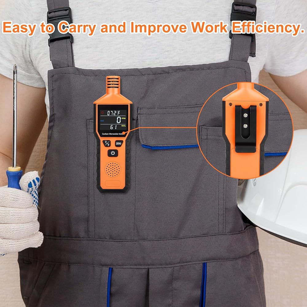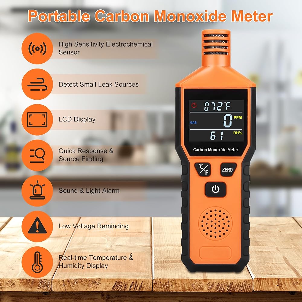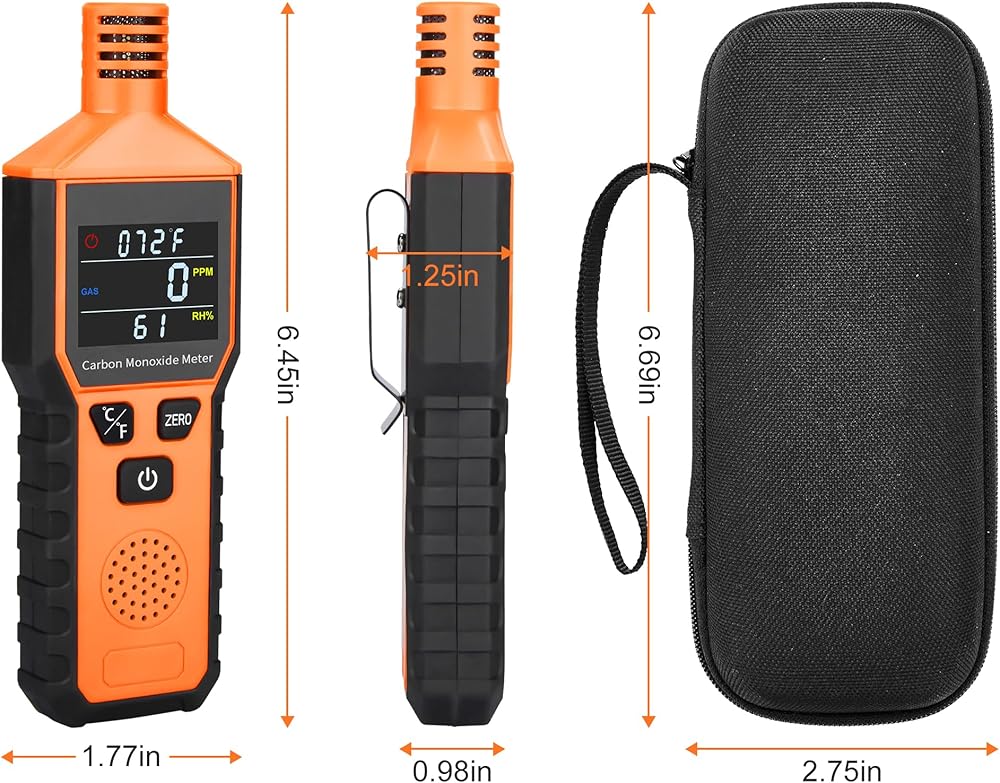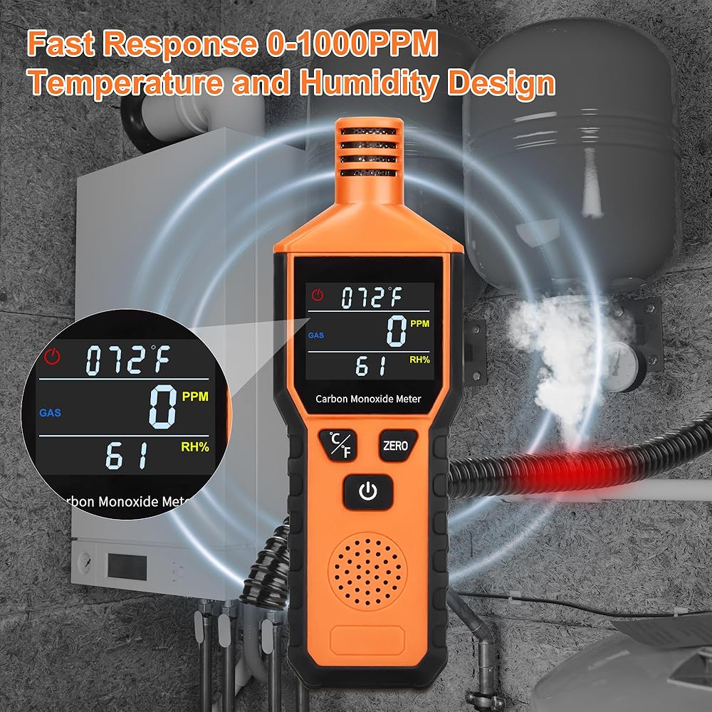 كاشف أول أكسيد الكربون المحمول يعمل بالبطارية، جهاز قياس أول أكسيد الكربون المحمول، درجة حرارة العرض الرقمي 3 في 1 (درجة فهرنهايت)، الرطوبة ومستوى ثاني أكسيد الكربون (0-1000PPM)، مراقب ثاني أكسيد الكربون للسفر والتخييم والسيارة وغرفة الفندق