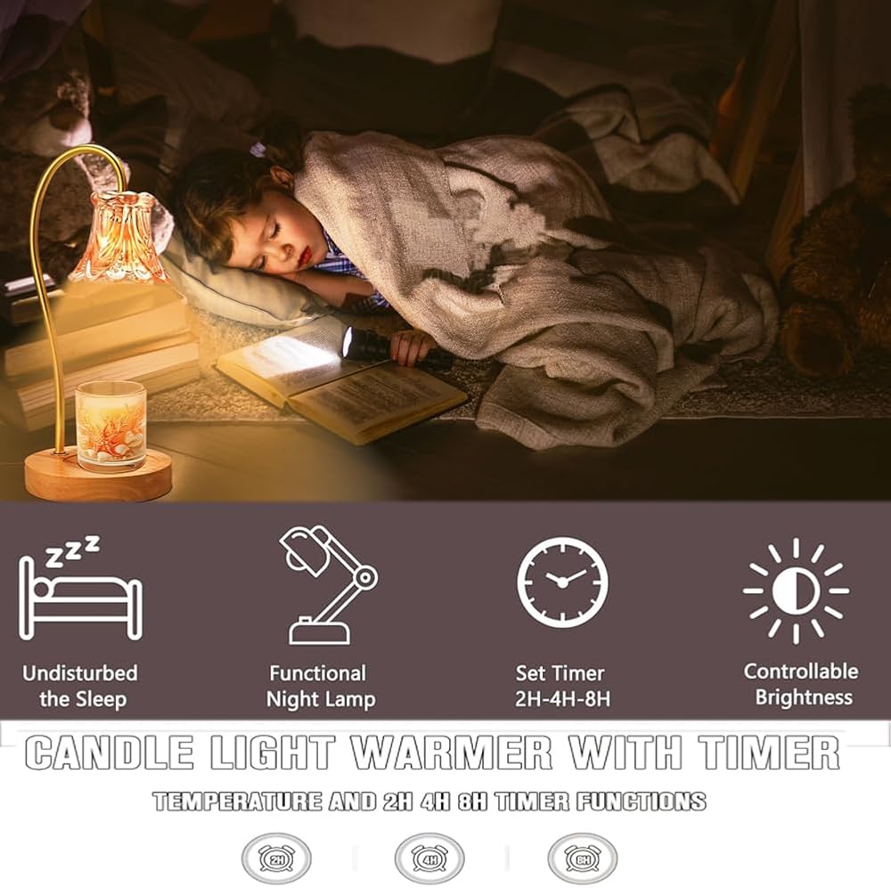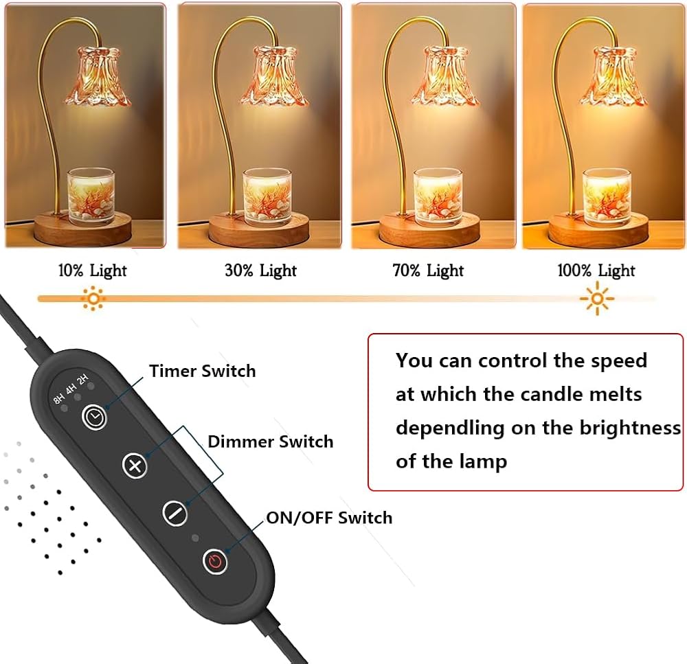 مصباح شمعة متعدد الوظائف: مع التحكم في الإضاءة، اضبط سرعة الذوبان حسب تفضيلاتك. باستخدام لمبة هالوجين 50 وات GU10، يقوم سخان الشموع الكهربائي الخاص بنا بإذابة الشموع والشمع من الأعلى إلى الأسفل، وتوزيع رائحة الشمعة المفضلة لديك بالتساوي في جميع أنحاء الغرفة. - تعديل سطوع الترس، كلما كان الإعداد أكثر سطوعًا، كلما كان الذوبان أسرع. يوفر مفتاح التوقيت 3 خيارات لمدة التوقيت (2H/4H/8H) لمرافقتك بأمان للنوم في ليلة هادئة.