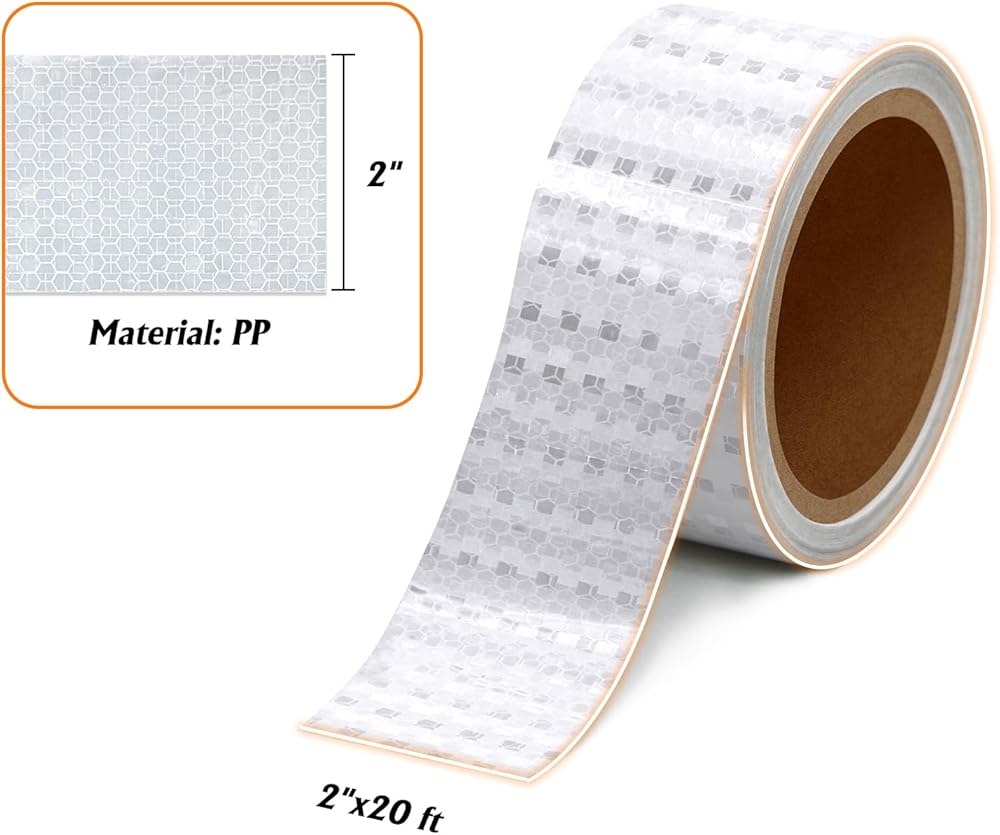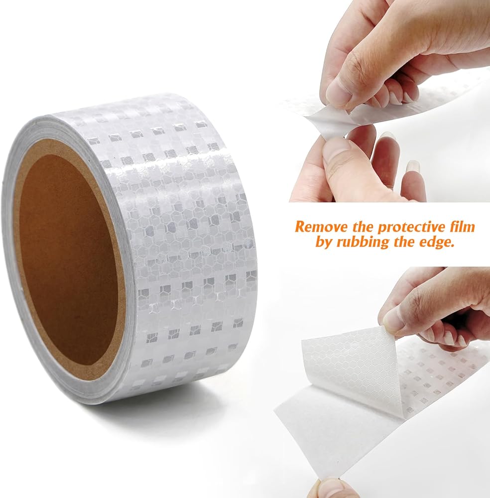 عاكس للغاية: شريط تصميم على شكل قرص العسل ونمط منشوري، ألوان بيضاء عالية الوضوح مع صفائح عاكسة لضمان أن شريط الأمان العاكس يعكس الضوء بشكل أفضل في الظلام.