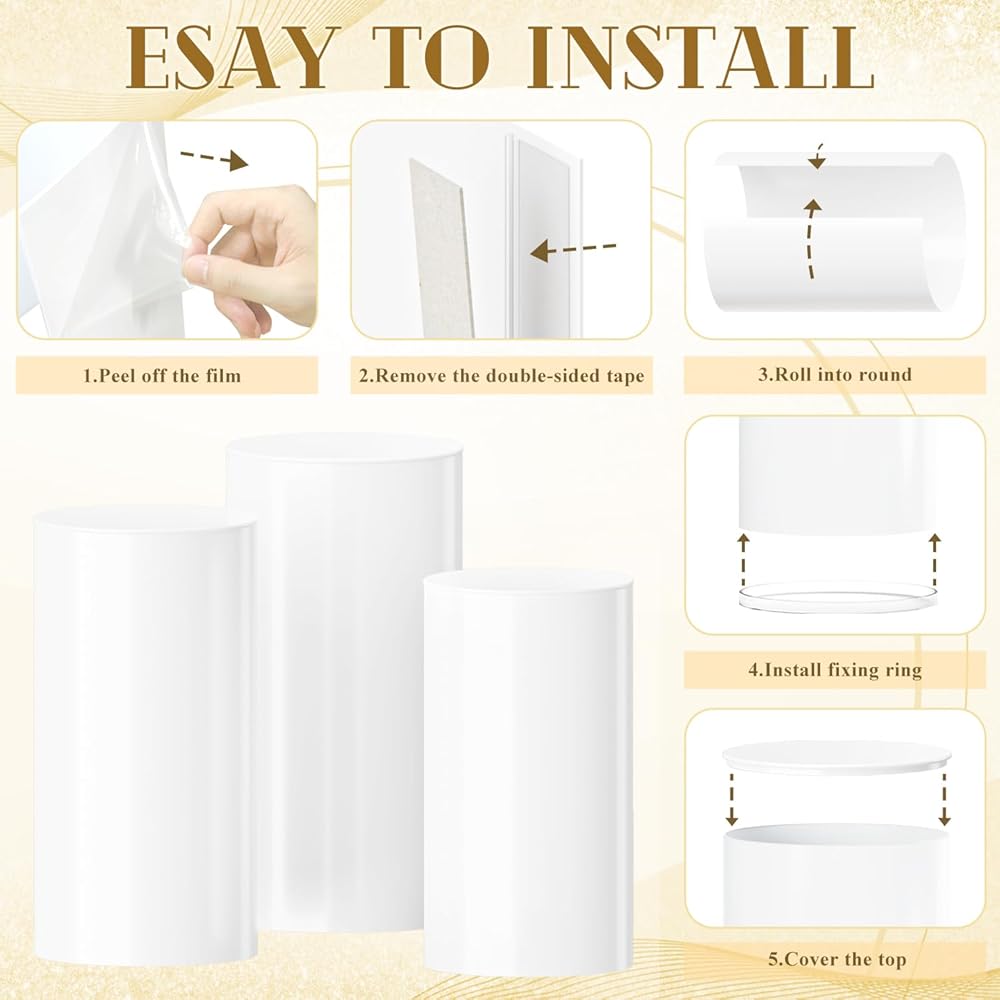 🌈【مادة عالية الجودة - قاعدة حامل أسطواني】يتميز حامل القاعدة الأسطواني للحفلات بمادة PVC عالية الجودة، مما يضمن مقاومة الماء والصدأ دون أي بهتان للألوان. توفر طبيعتها القوية وطويلة الأمد دعمًا يمكن الاعتماد عليه لكعك الحلوى أو الزهور أو الهدايا أو حاملات الشموع.