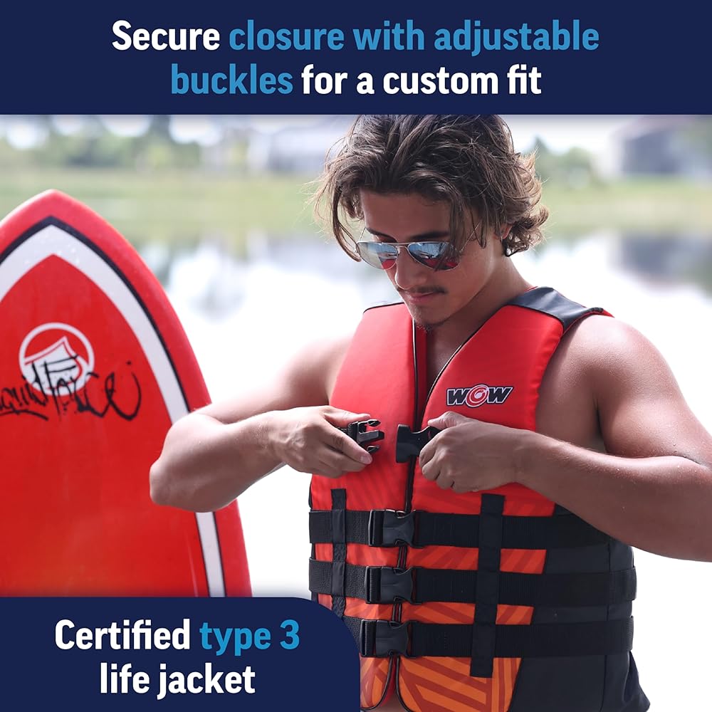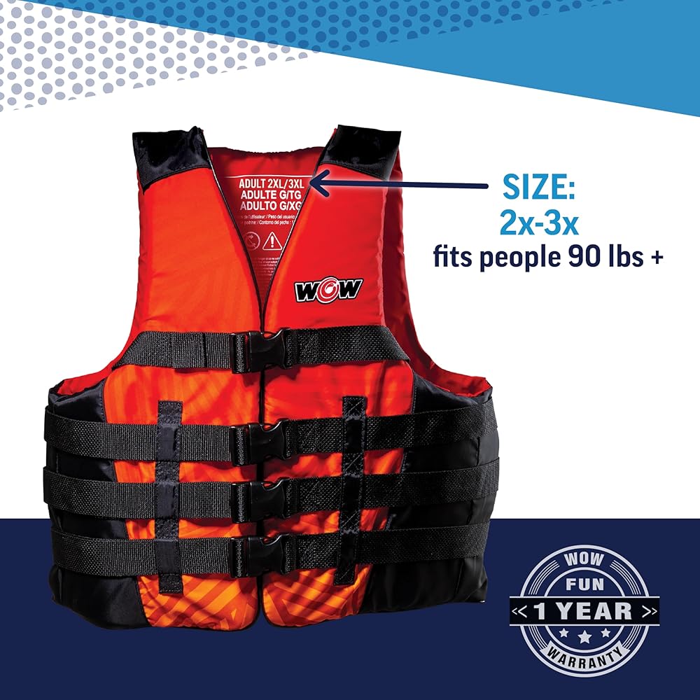 مقاس كبير / كبير جدًا: تضمن سترة النجاة WOW Sports L/XL للبالغين ملاءمة مريحة وآمنة، وتتسع للأشخاص الذين يبلغ وزنهم 90 رطلاً + لتجربة مائية خالية من القلق. مثالية لحمامات السباحة وصيد الأسماك والبحيرات والمحيطات، وقد تم تصميم سترة النجاة هذه لتقديم أداء عالي الجودة عبر مختلف الأنشطة المائية.