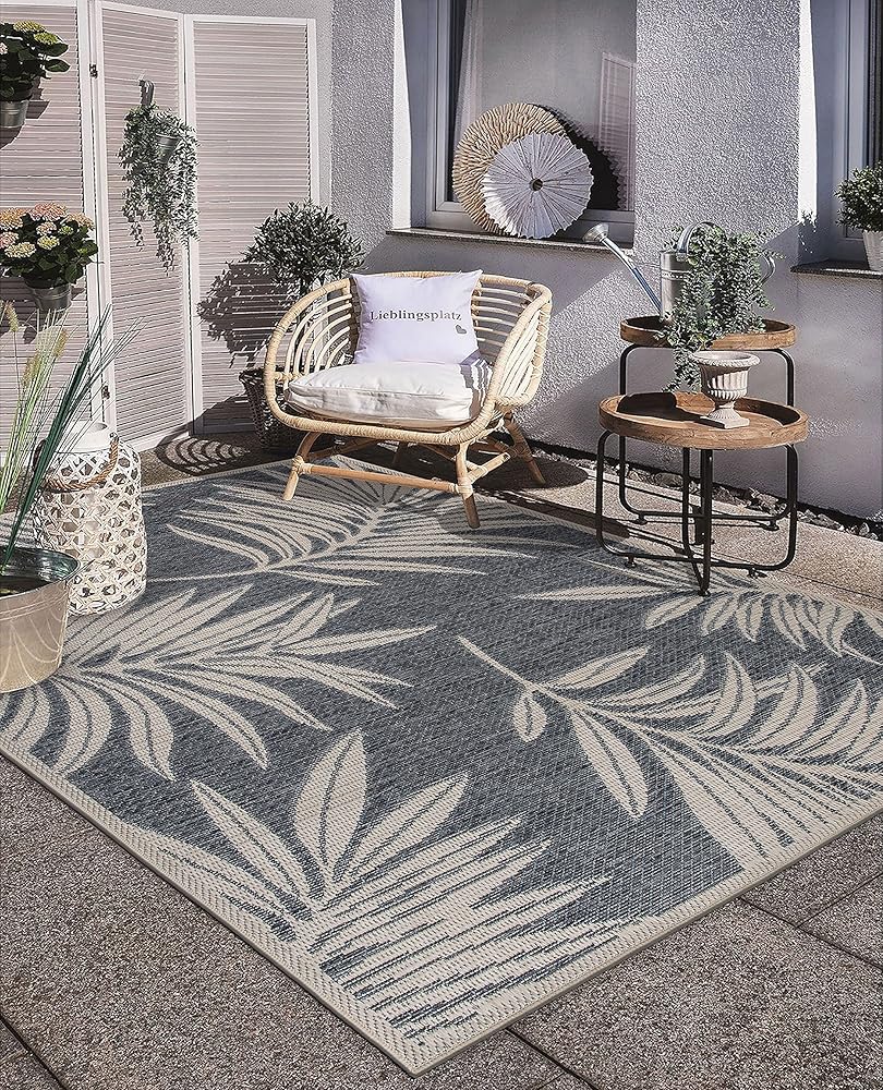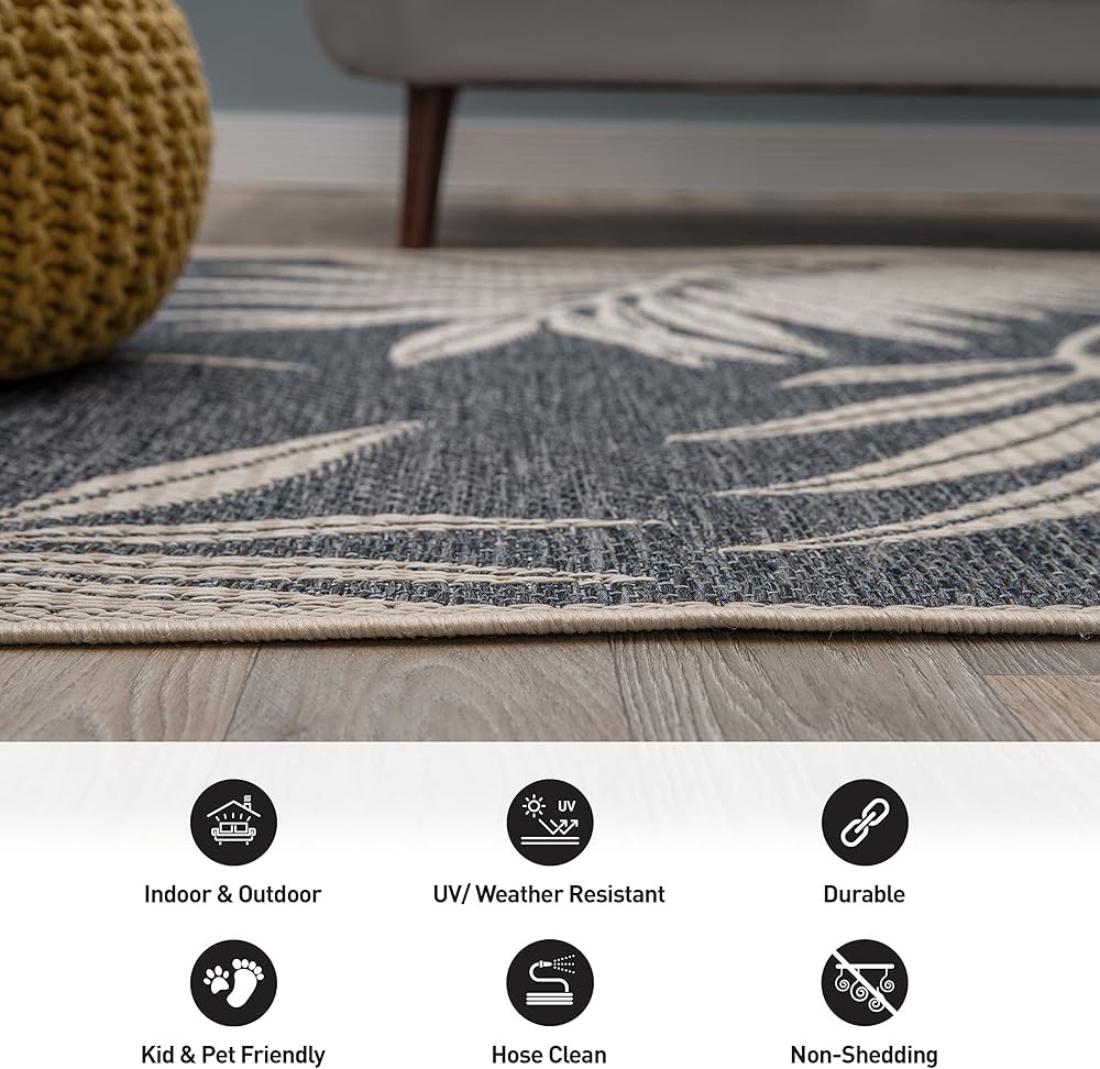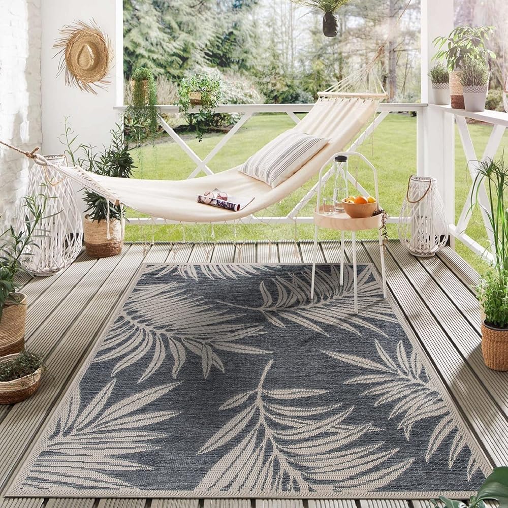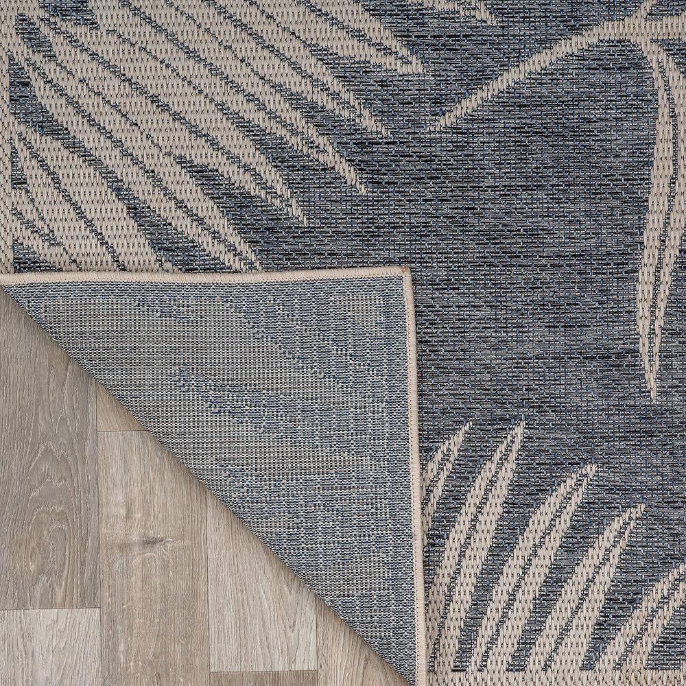 سجادة بتصميم أوراق الشجر من Rugshop للفناء وسجاد سطح السفينة وسجاد الشرفة في الأماكن الداخلية/الخارجية، مقاس 5 × 7 بوصة أزرق