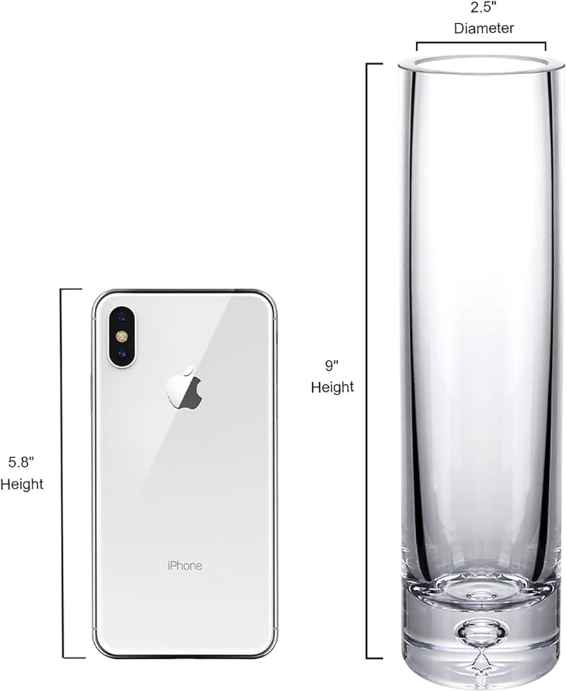 مزهريات برعم أسطواني من Diamond Star مزهرية زجاجية رفيعة لتزيين المنزل مزهرية شفافة لقطع الزفاف المركزية (2.5 بوصة × 9 بوصة)