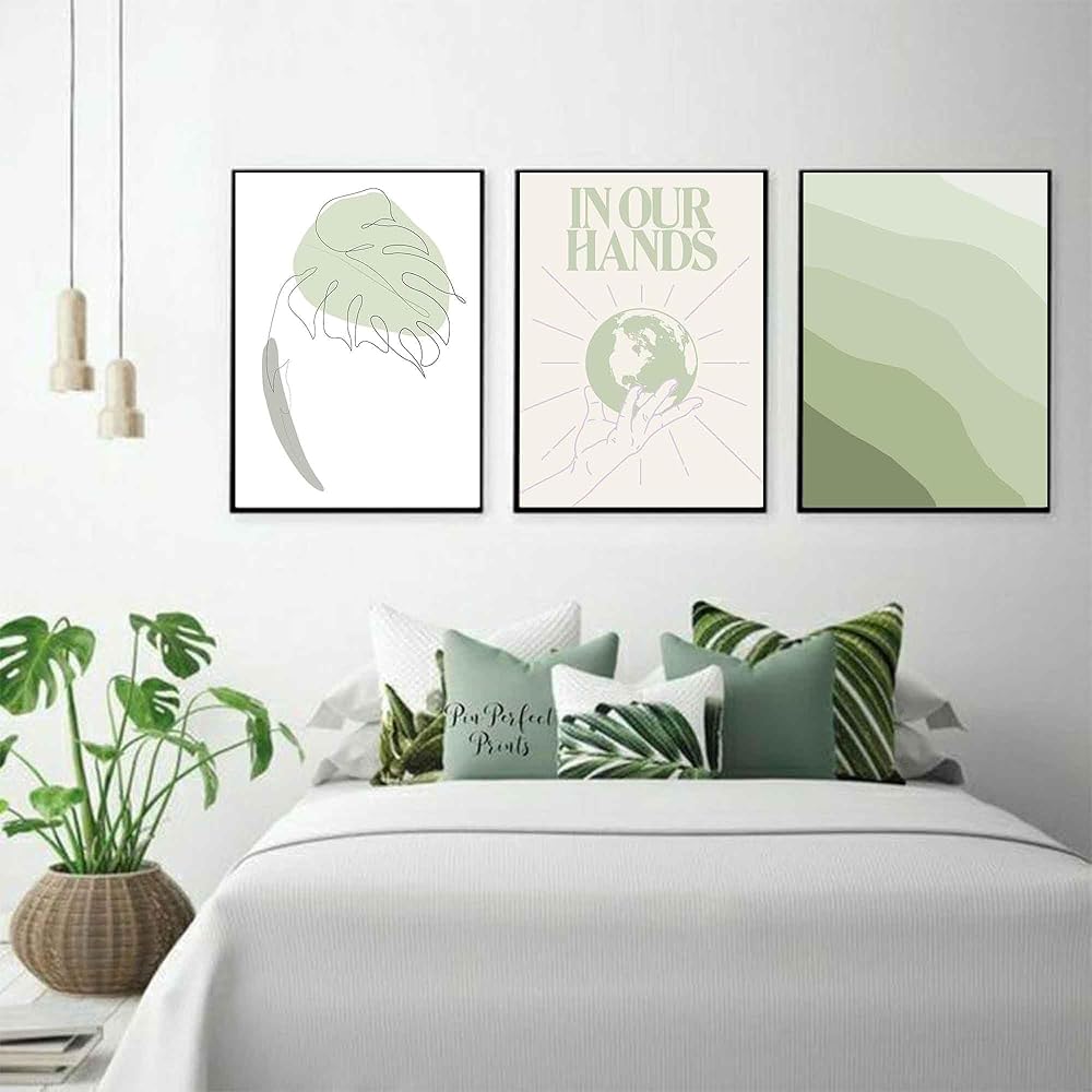 Algasan حكيم الأخضر جدار الفن يطبع مجردة جدار الفن ملصق الحد الأدنى ورقة الأرض خط الفن بوهو معرض جدار يطبع ديكور لغرفة النوم غرفة المعيشة (8x10 بوصة، غير المؤطرة)