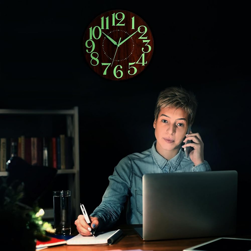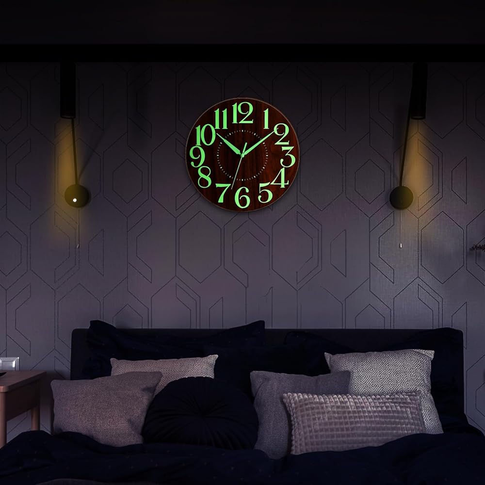 ساعة حائط مضيئة - الأرقام والعقارب مطلية بالفوسفور لامتصاص طاقة الضوء الكافية خلال النهار لتتوهج في الظلام. مناسب لكبار السن والأشخاص الذين يعانون من ضعف البصر.