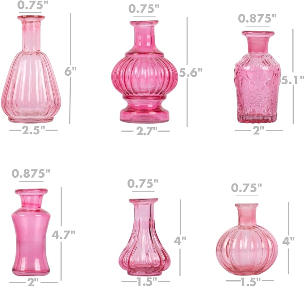 مزهريات وردية عتيقة خيارات مقاسات متعددة: مجموعة مزهريات البراعم الوردية المكونة من 6 قطع تتضمن مقاسات 1.3 بوصة × 3.5 بوصة، 1.5 بوصة × 4 بوصة، 1.5 بوصة × 5.3 بوصة، 2.3 بوصة × 4.5 بوصة، 1.5 بوصة × 5.5 بوصة، و 2 × 7. توفر هذه المزهريات الزجاجية الصغيرة ذات اللون الوردي مجموعة متنوعة مثالية لجميع تنسيقات الزهور الخاصة بك. سواء كنت تبحث عن مزهريات وردية صغيرة للزهور أو مزهرية وردية صغيرة عتيقة، فإن هذه المجموعة تلبي جميع احتياجاتك، مما يجعلها مثالية لإنشاء مزهريات وردية جميلة في المنتصف.