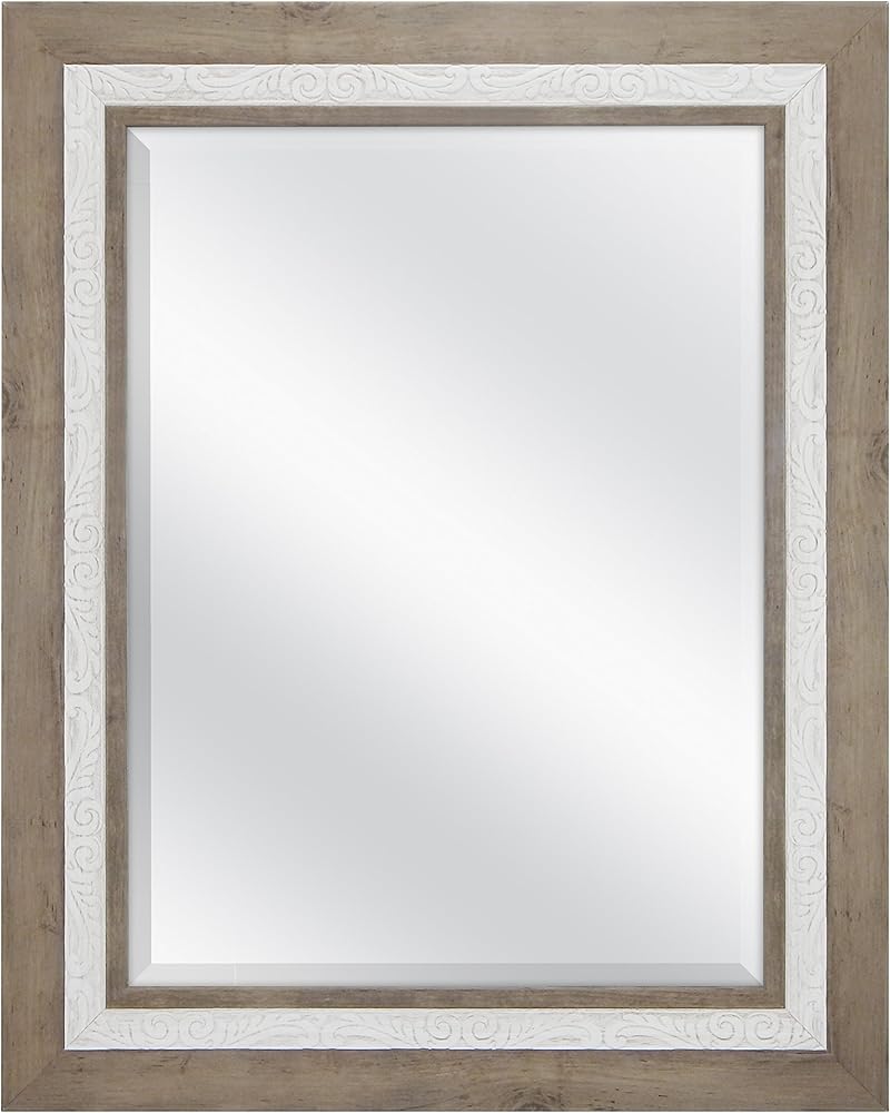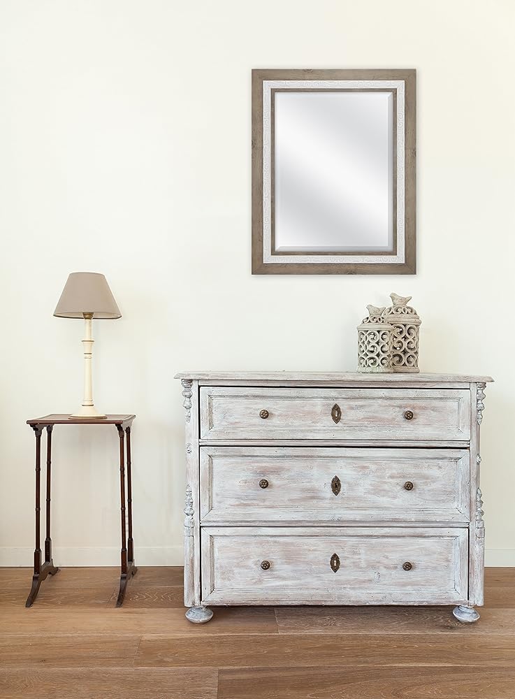 مرآة حائط مشطوفة مقاس 18 × 24 بوصة من MCS، حجم إجمالي 24.5 × 30.5 بوصة، خشب ريفي ولمسة نهائية بيضاء منقوشة
