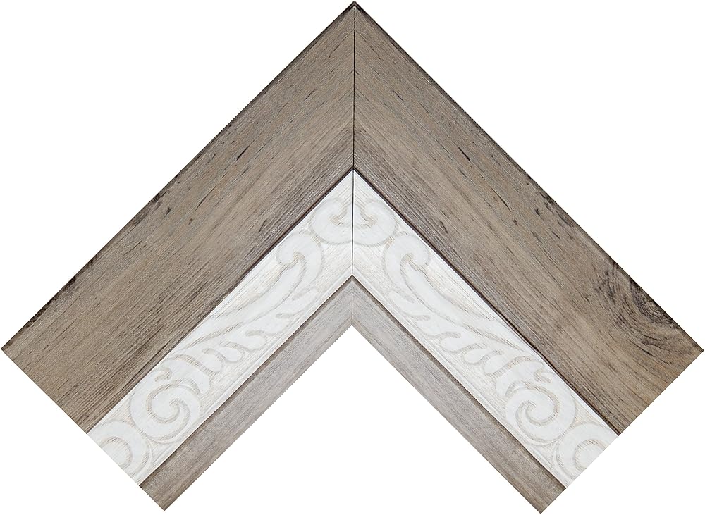 - هذا الإطار بعرض 3.5 بوصة يحتوي على حبيبات خشبية ريفية مع نمط تخريمي أبيض منقوش