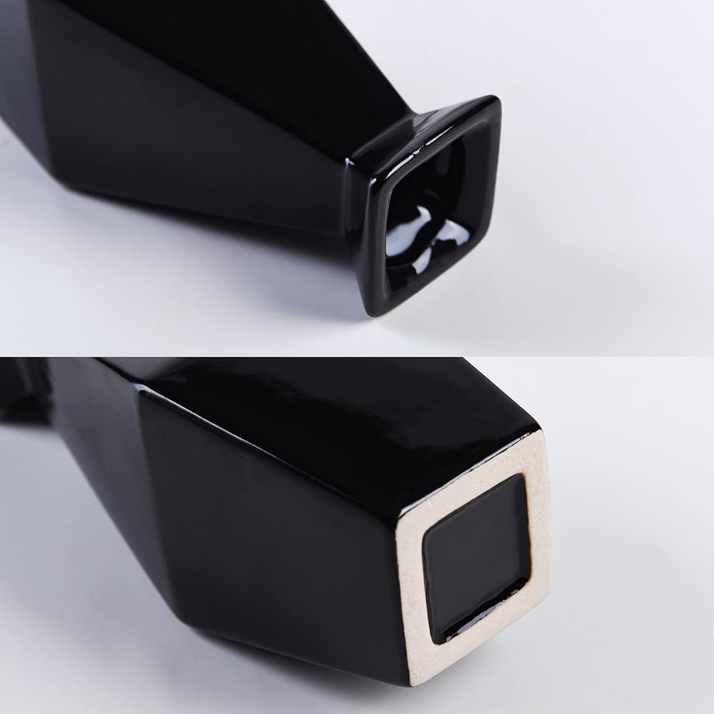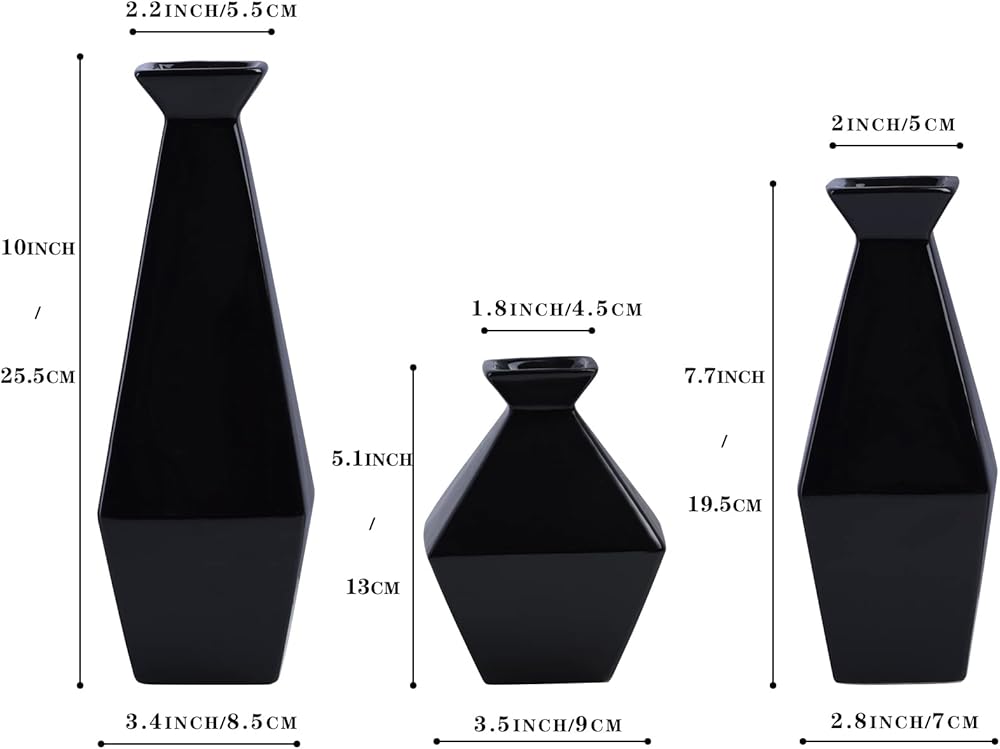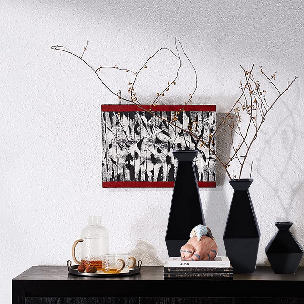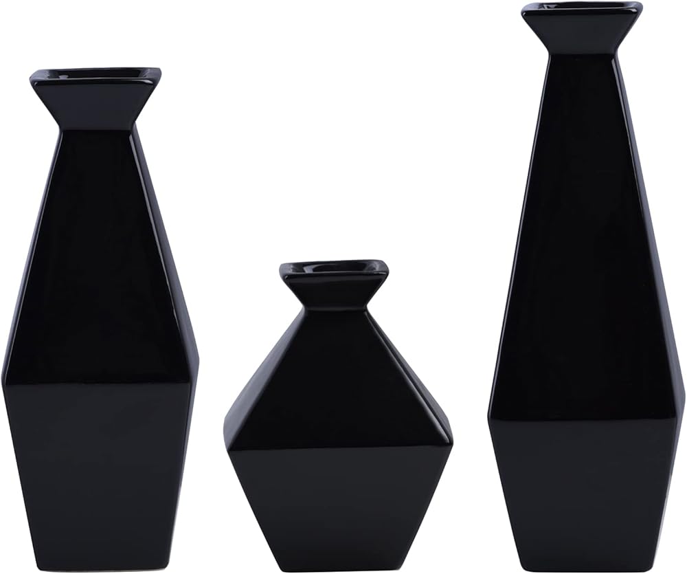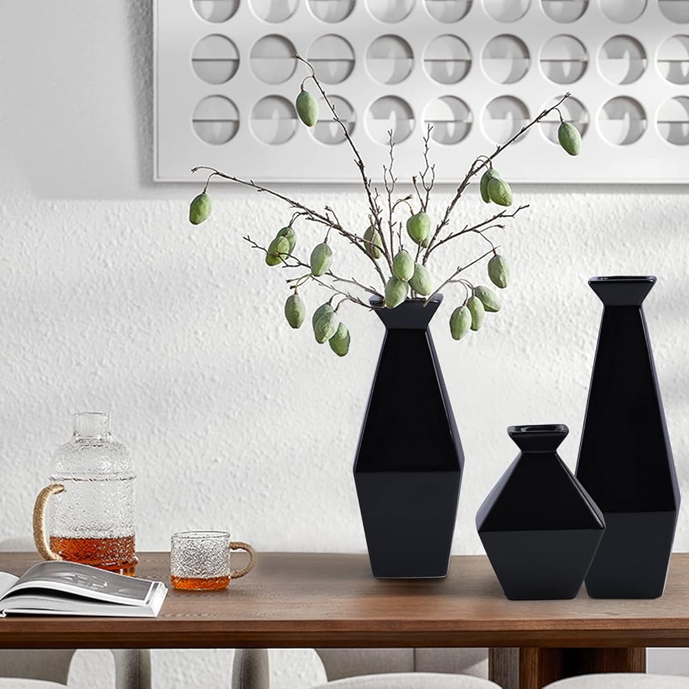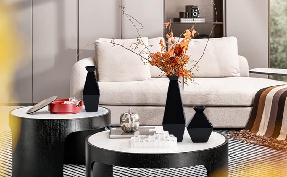 مجموعة مزهريات سيراميك يوندو مكونة من 3 قطع - مثالية لديكور المنزل والمكتب والمدخل، ومزهريات سوداء لديكور غرفة المعيشة الحديثة والريفية، وديكور منزلي بسيط. قطع مركزية مثالية أو مزهريات زهور بامباس