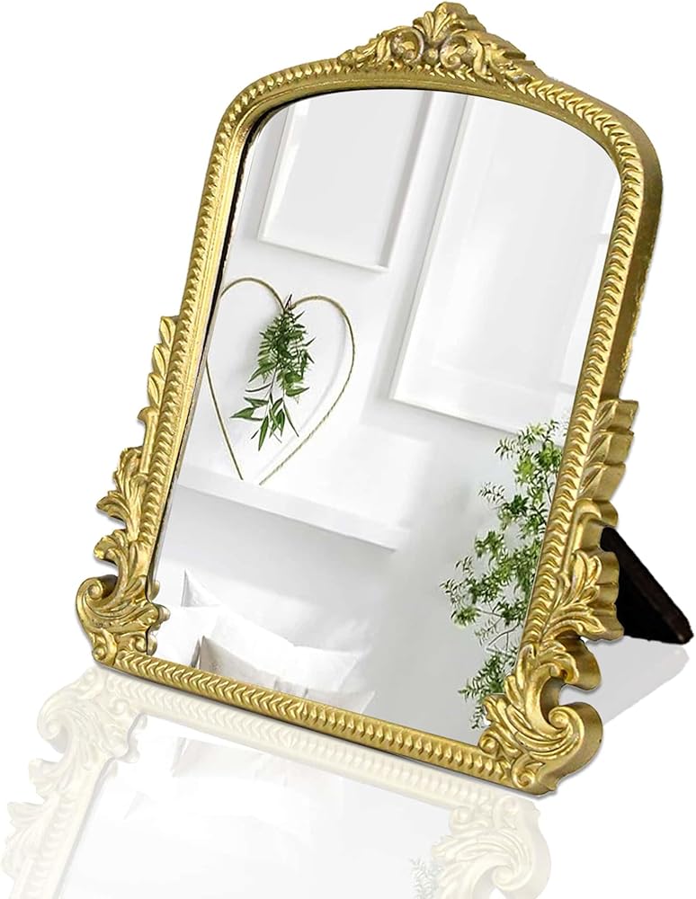 【هدية مثالية】- مرآة التجميل هذه مثالية للاستخدام اليومي، أو كهدية لأعياد الميلاد والذكرى السنوية والكريسماس ورأس السنة وما إلى ذلك. مرآة المكياج هي خيار جيد للفتيات والنساء ومحبي المكياج أو محبي الديكورات العتيقة.