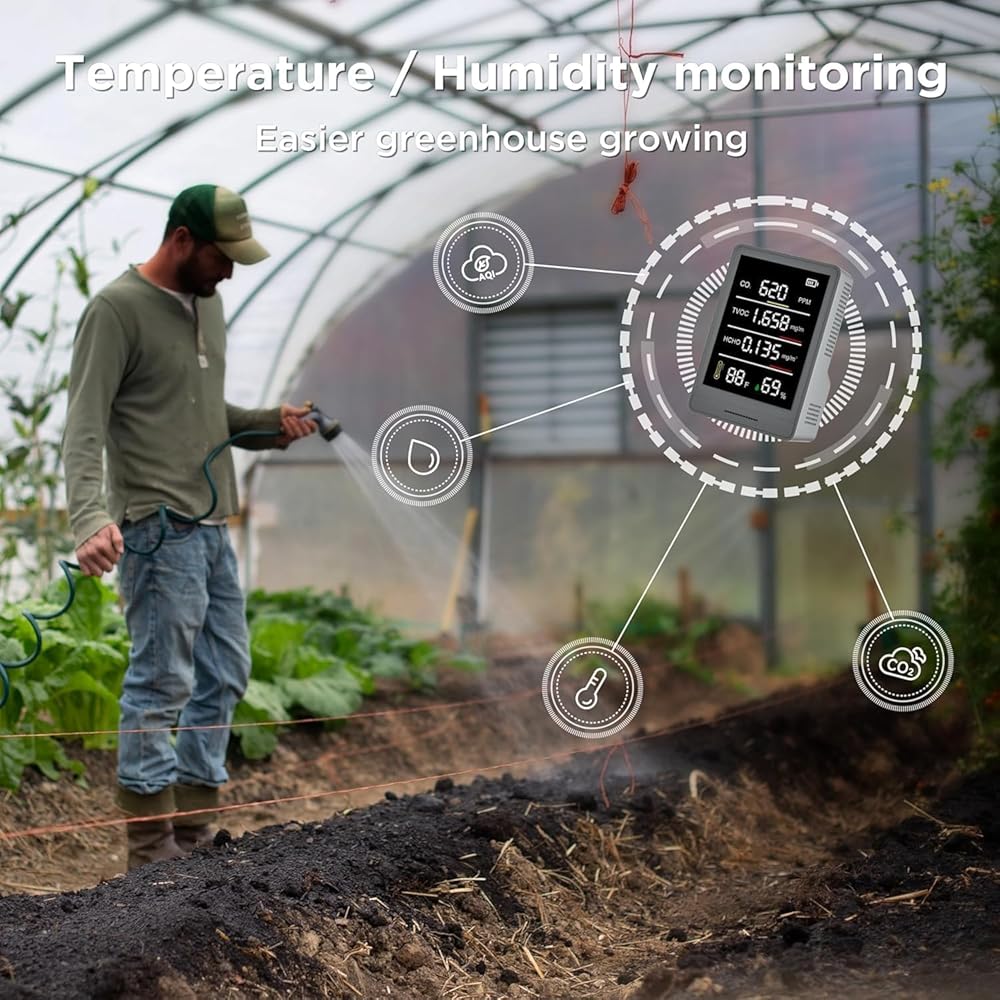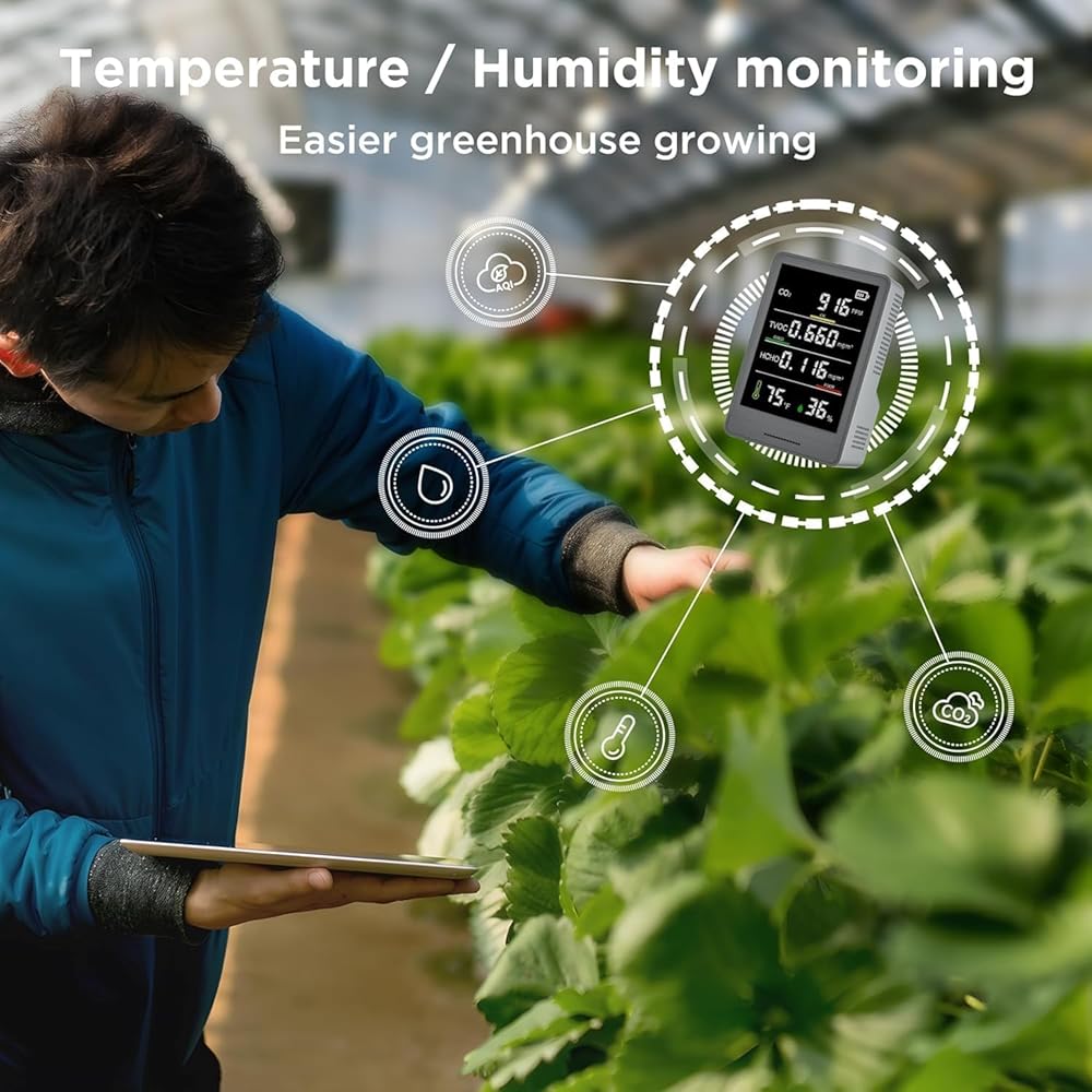 جهاز مراقبة جودة الهواء الداخلي الاحترافي 5 في 1، جهاز مراقبة ثاني أكسيد الكربون المحمول الداخلي | درجة الحرارة | كاشف الفورمالديهايد | الرطوبة TVOC | جهاز اختبار جودة الهواء - جهاز مراقبة الهواء النظيف في الأماكن المحصورة