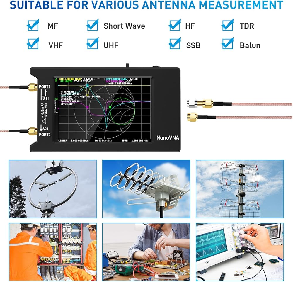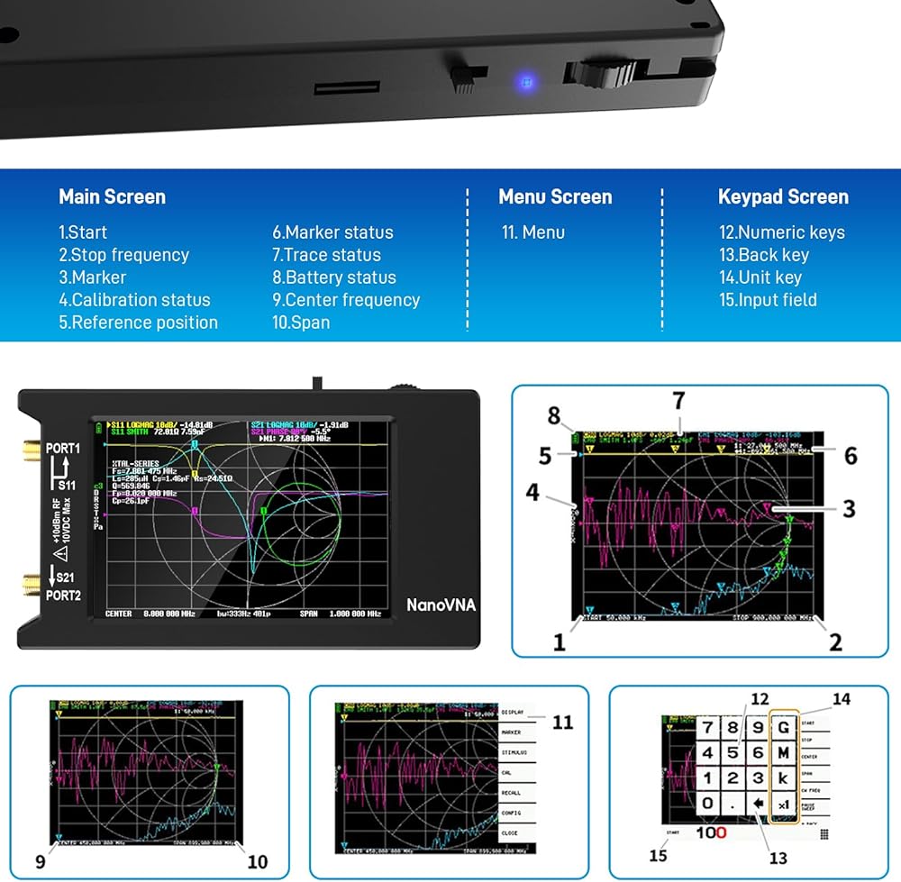 • 【خوارزمية التردد المحسنة 】 يمكن لخوارزمية التردد المحسنة لـ nanovna h4 استخدام الامتداد التوافقي الغريب لـ si5351 لدعم تردد القياس حتى 1.5 جيجا هرتز. يوفر نطاق التردد 50K-300MHz للمخرج المباشر si5351 أفضل من ديناميكي 70dB. يوفر النطاق الممتد 300 ميجا هرتز - 900 ميجا هرتز أفضل من 60 ديسيبل من الديناميكيات، والنطاق 900 ميجا هرتز - 1.5 جيجا هرتز أفضل من 40 ديسيبل من الديناميكيات. استخدمه للتحقق من تركيبات الكابلات أو الهوائيات الجديدة ولضبط موالف التردد اللاسلكي بشكل روتيني لتحقيق المستوى الأمثل