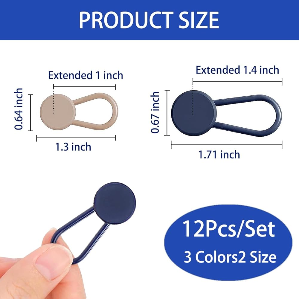 【حجم المنتج】: تتضمن هذه المجموعة ثلاثة أحجام من الأزرار بقطر حوالي 0.6 بوصة (تمديد الخصر بمقدار 1 بوصة) و0.7 بوصة (تمديد الخصر بمقدار 1.4 بوصة). اختاري موسع الخصر الأنسب لبنطلونك، مما يضمن محيط خصر أكثر راحة واتساعًا.
