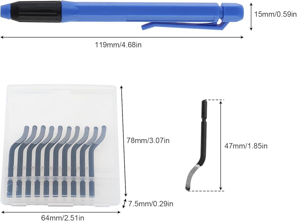 • التصميم: مزود بمقبض من الألومنيوم يتوافق مع بيئة العمل، ويمكن استخدامه للقبضة الآمنة، وصندوق أمان لتخزين الشفرة الإضافية. سواء كنت محترفًا صناعيًا أو ميكانيكيًا أو متحمسًا للأعمال اليدوية، فإن أدوات إزالة الأزيز مناسبة لك