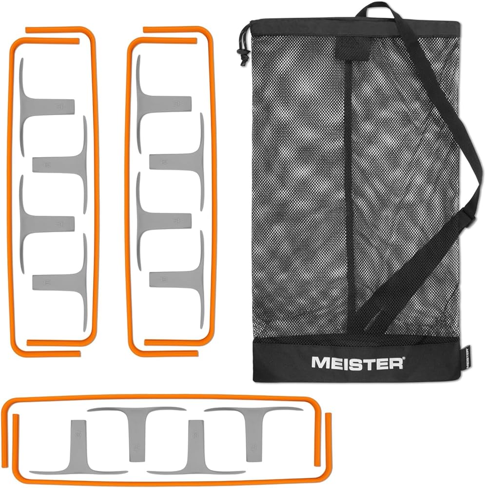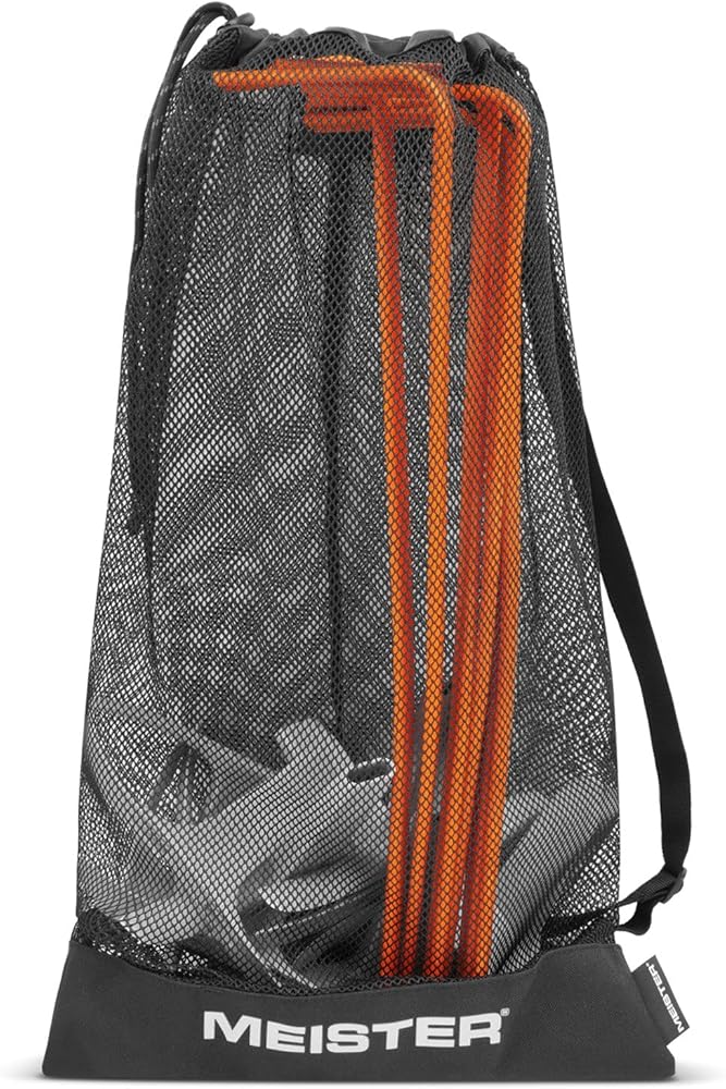 مجموعة من 6 حواجز تتضمن حقيبة حمل شبكية مخصصة برباط مع حزام كتف - حافظ على نظام الحواجز الخاص بك منظمًا بين الممارسات. متوفر باللون الأصفر الكهربائي عالي التباين أو البرتقالي الآمن للحصول على رؤية فائقة في جميع ظروف التدريب