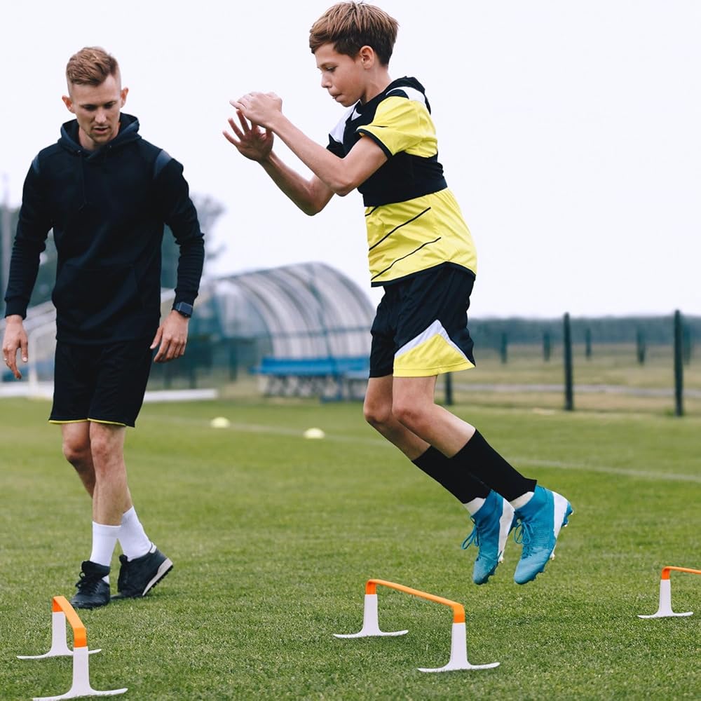 نظام حواجز الرشاقة من الجيل التالي مقاس 6 بوصات للرياضيين الذين يطورون السرعة والقوة الديناميكية - مثالي للتمارين البليومترية، وتدريبات السرعة، وتدريبات الأقدام السريعة