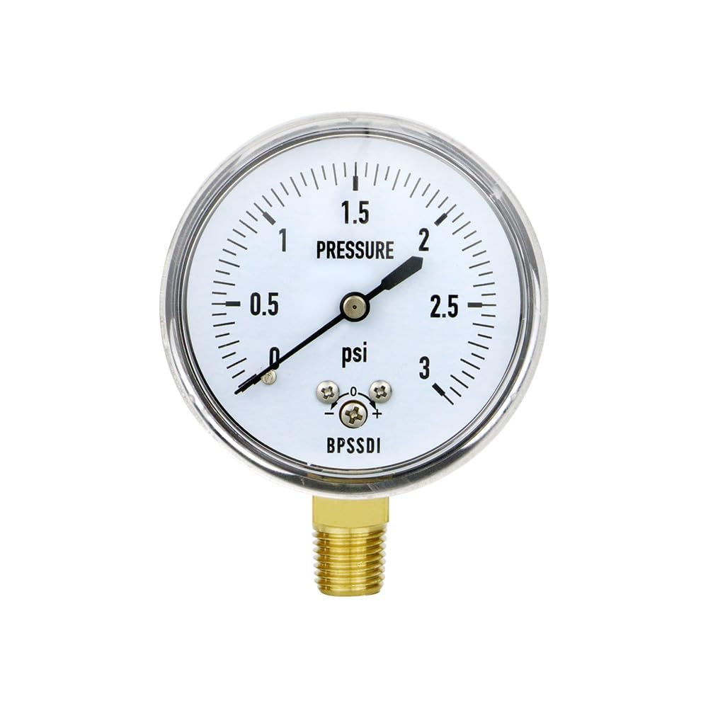 قراءة سريعة ودقيقة: قرص 2.5 بوصة وحافظة من الراتنج الشفاف تجعلها سريعة القراءة. مقياس الضغط هو مقياس واحد 0-5psi مع دقة عرض + أو - 2/1/2% لقراءة أكثر دقة.