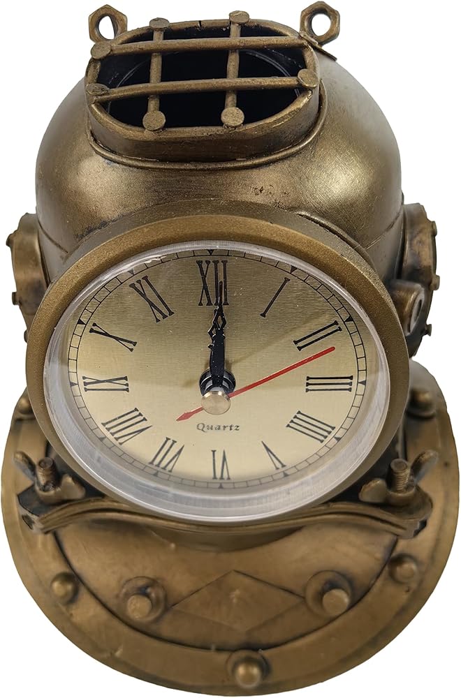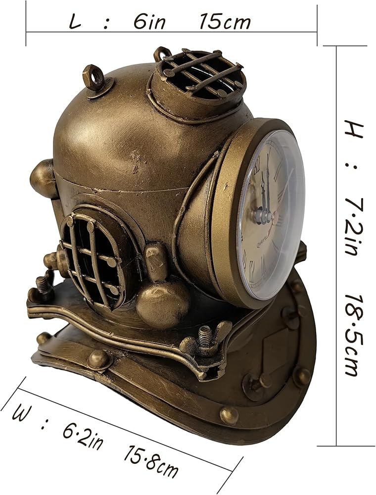 تصميم خوذة غوص معدنية مبتكرة: ساعة المكتب المعدنية على شكل خوذة غوص مصنوعة من مواد معدنية عالية الجودة، مع سطح أملس وألوان زاهية وشكل واقعي، مما يجعلها إكسسوارًا زخرفيًا أنيقًا وفريدًا لمنزلك أو مكتبك.