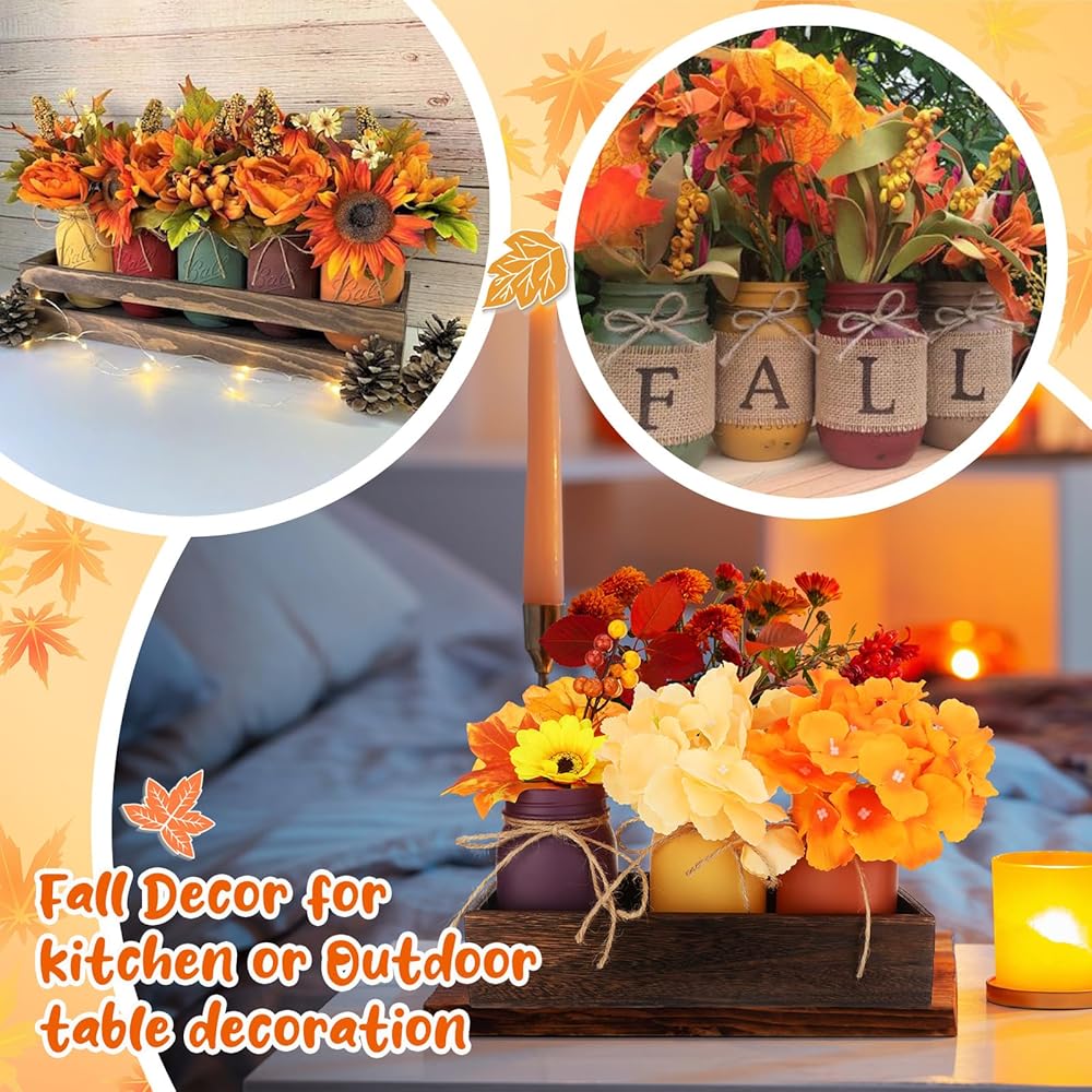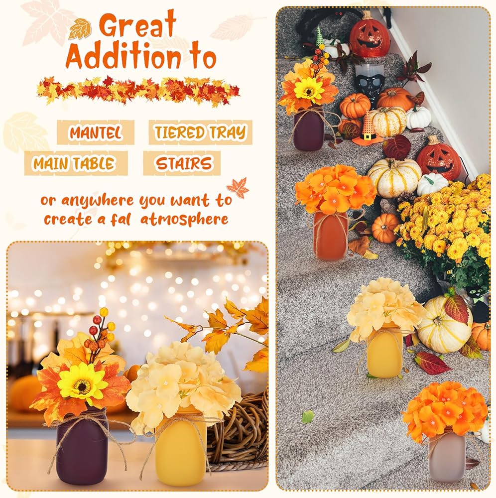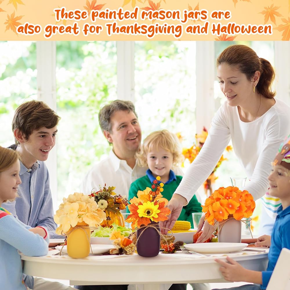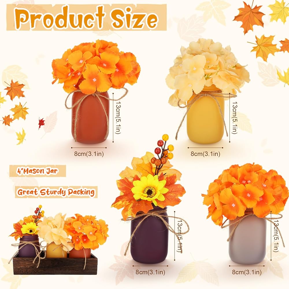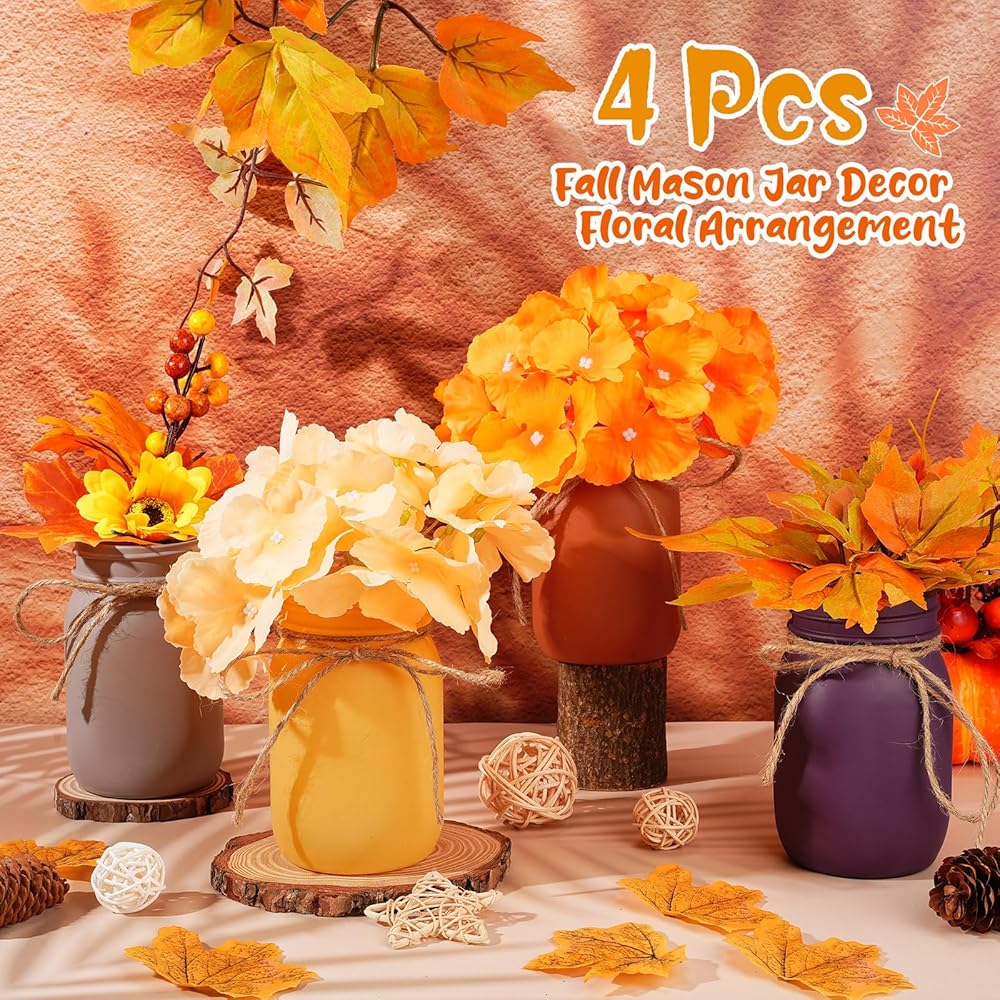 4 قطع من برطمان ماسون الخريفي من بوكون لطاولة عيد الشكر ومزرعة ميسون ديكور ريفي برطمانات ميسون مزخرفة بطبقات إعدادات ديكور الطاولة لمطبخ غرفة المنزل (لا تشمل الزهرة)