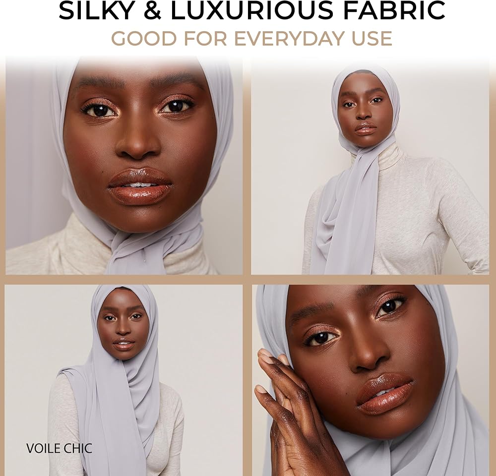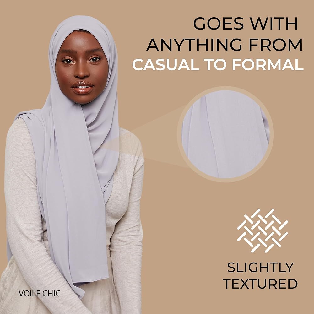 𝐋𝐈𝐆𝐇𝐓𝐖𝐄𝐈𝐆𝐇𝐓 𝐋𝐔𝐗𝐔𝐑𝐘: استمتع بالستائر السهلة لوشاح الحجاب الشيفون الفاخر الصغير الفاخر من Voile Chic للسيدات، المصمم بنسبة 100٪ من البوليستر. تضمن طبيعته الخفيفة والمتدفقة راحتك المطلقة.