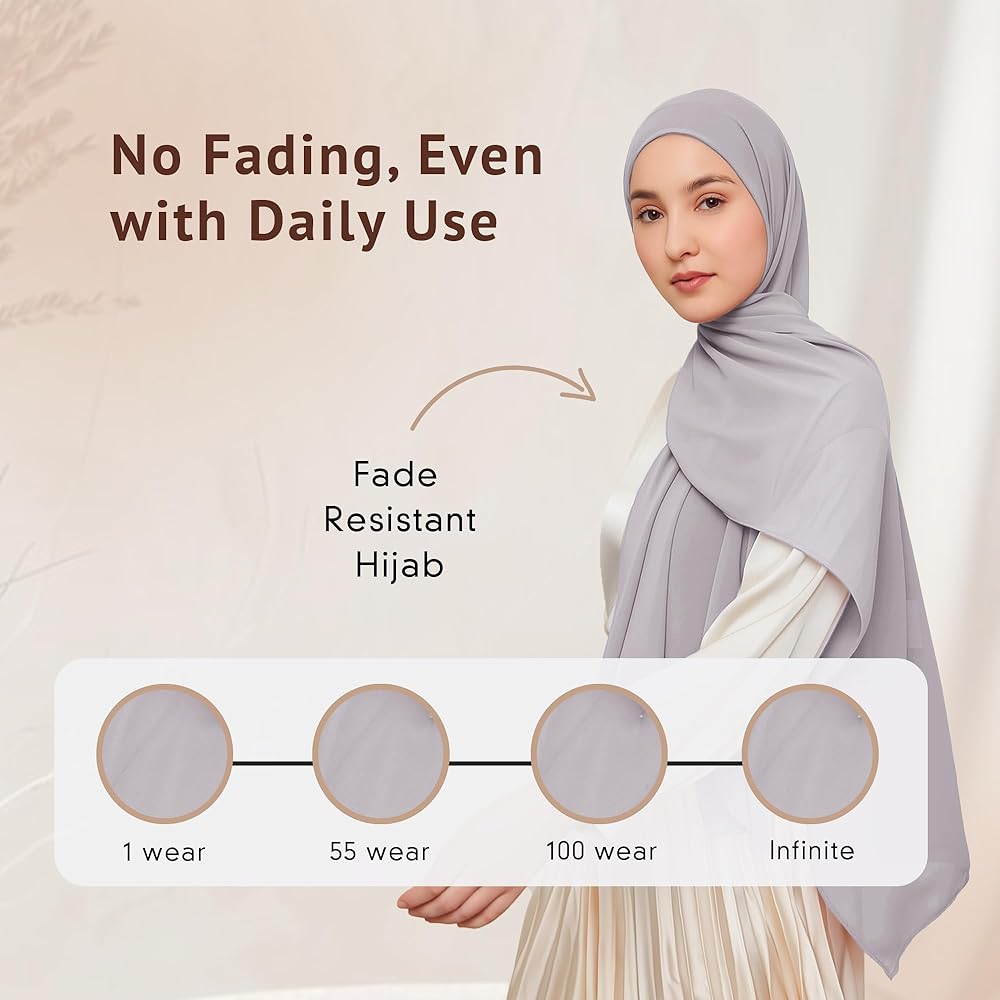 𝐃𝐔𝐑𝐀𝐁𝐋𝐄 & 𝐇𝐈𝐆𝐇-𝐐𝐔𝐀𝐋𝐈𝐓𝐘 𝐅𝐀𝐁𝐑𝐈𝐂: مصنوع من نسيج حريري ناعم وفاخر عالي الجودة يدوم، مما يوفر لك فترة طويلة حجاب إسلامي دائم ومريح يتفوق على البدائل الأرخص والمقرمشة. مثالية لأولئك الذين يقدرون المواد الأقل، ولا يحبون الكي، ويبحثون عن حجاب شيفون عالي الجودة.