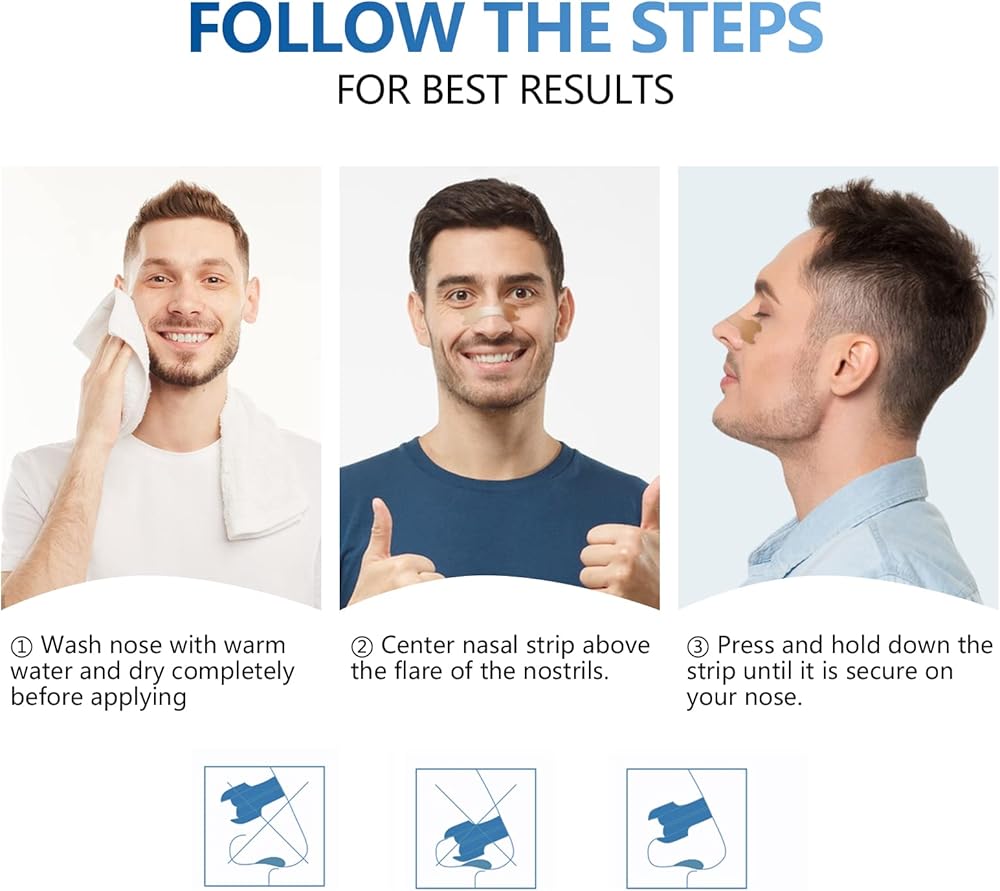 تنفس بسهولة - تقلل شرائط الأنف من الشخير وهي مثالية للبشرة الحساسة وتسمح لك بالتنفس بسهولة عند الحاجة، سواء كنت تجري أو في المنزل.
