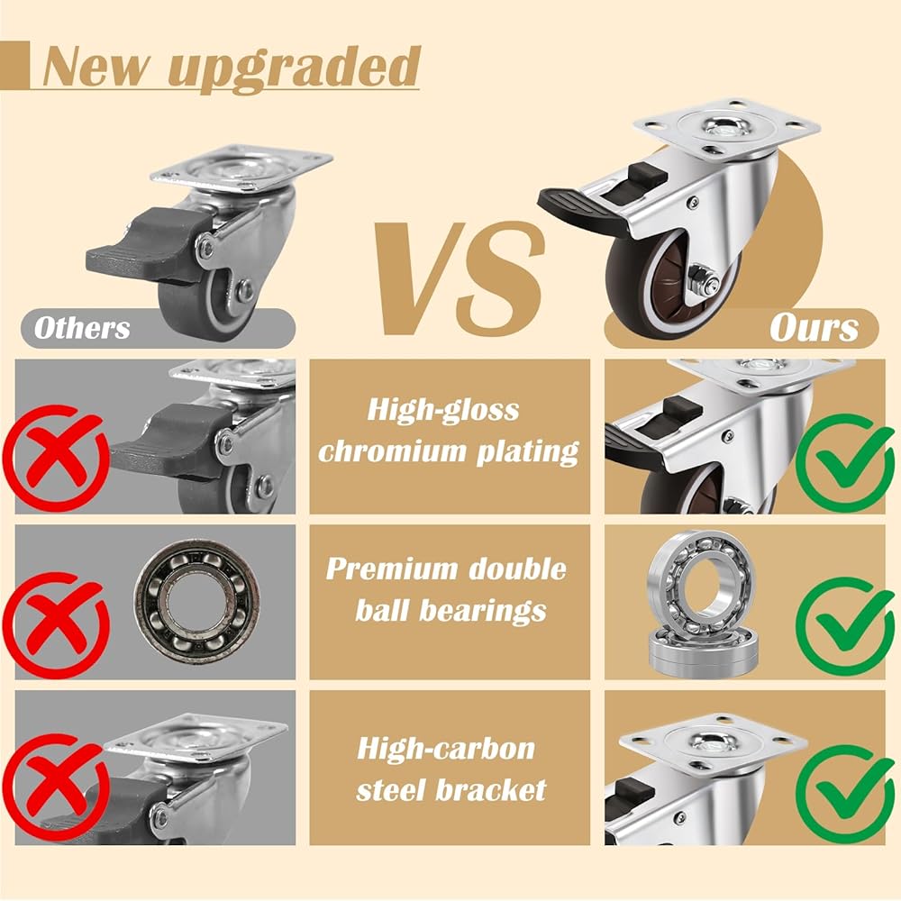 متعددة الاستخدام والدعم: هذه العجلات ذات المظهر المنخفض متعددة الاستخدامات للاستخدام الداخلي والخارجي، بما في ذلك الدوللي، والبليت، والعربة، والرف، ومزارع الحديقة، والمسند، والقاعدة الخشبية، والجراج وغيرها من المشروعات التي تصنعها بنفسك. هل لديك أسئلة؟ اتصل بنا في أي وقت للحصول على دعم العملاء الفوري.
