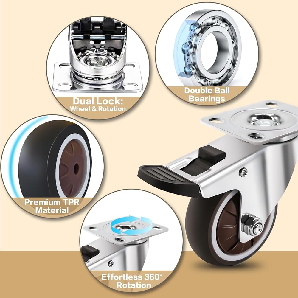 مرنة ولكنها آمنة: سوف تحب هذه العجلات الصغيرة - صغيرة الحجم ولكن خفيفة الحركة. قم بتركيب العجلات الدوارة، فهي تدور 360 درجة وتغلق بسهولة عند الحاجة. السلامة هي المفتاح مع محامل كروية مزدوجة محكمة الغلق رائعة لتحقيق الثبات والنعومة. نحن ملتزمون بإطالة عمر هذا اللطيف الصغير.