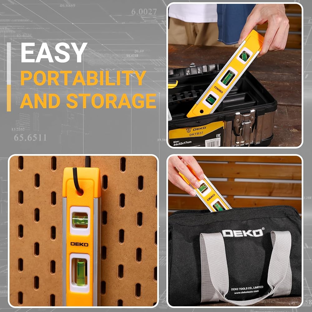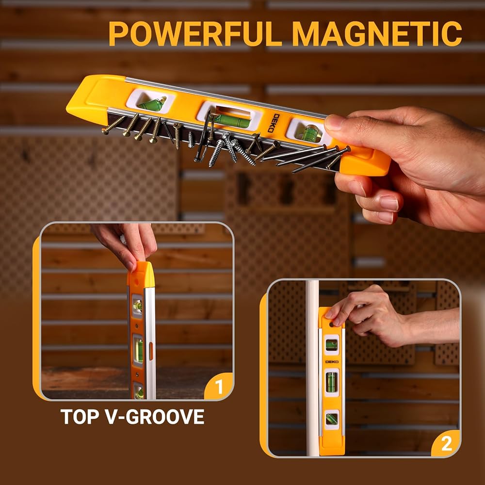 🏆[دقيق ومتين]: يتميز مستوى الطوربيد على مستوى الصندوق المغناطيسي مقاس 9 بوصة بإطار من الألومنيوم عالي التحمل يضمن الدقة والأداء طويل الأمد.
