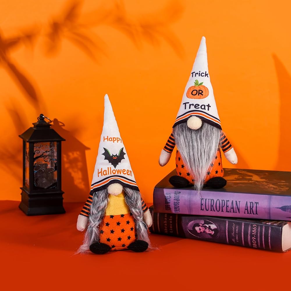 زينة عيد الهالوين، قطعتان من التماثيل السويدية المصنوعة يدويًا من القطيفة لطاولات الهالوين، مستلزمات ديكورات حفلات الهالوين المنزلية هدية للأطفال
