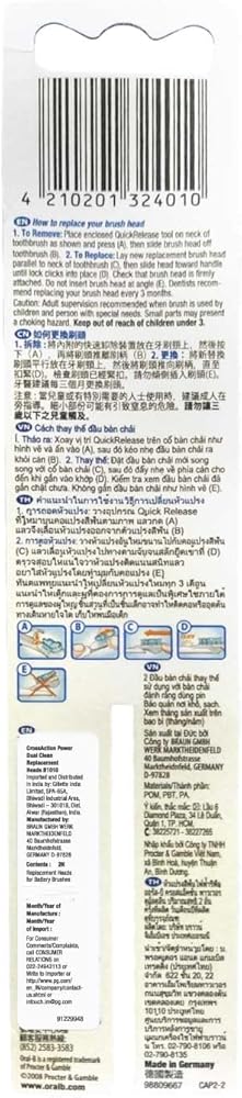 شعيرات المؤشر: تتلاشى في منتصف الطريق للإشارة إلى وقت استبدال رأس الفرشاة؛ شعيرات متقاطعة فائقة النعومة: متعددة الزوايا في اتجاهات متعاكسة للوصول بين الأسنان، وترفع البلاك وتمسحه بلطف؛ رأس الطاقة الدوار: يفك ويزيل البلاك من الأسطح خط اللثة والأسنان الخلفية